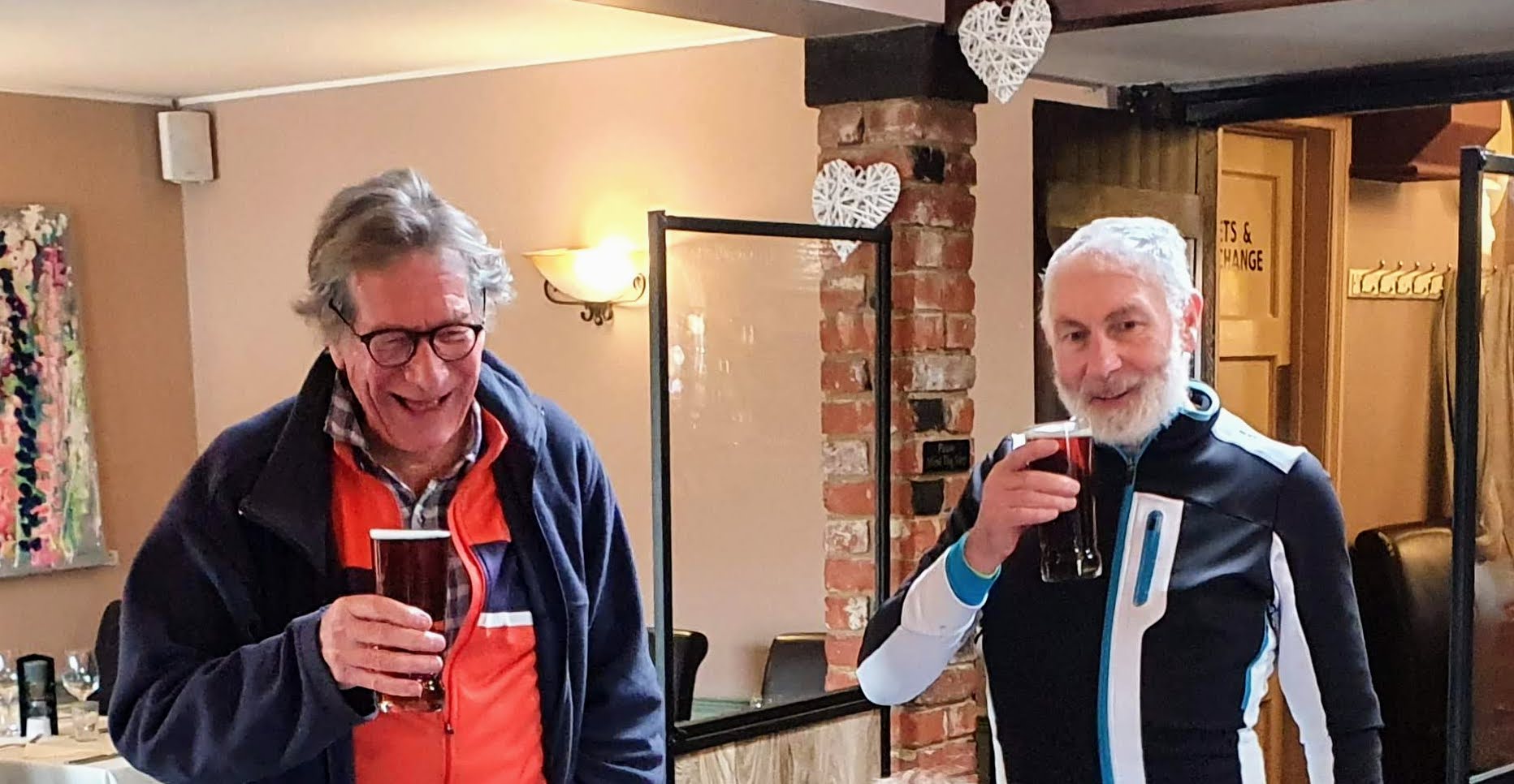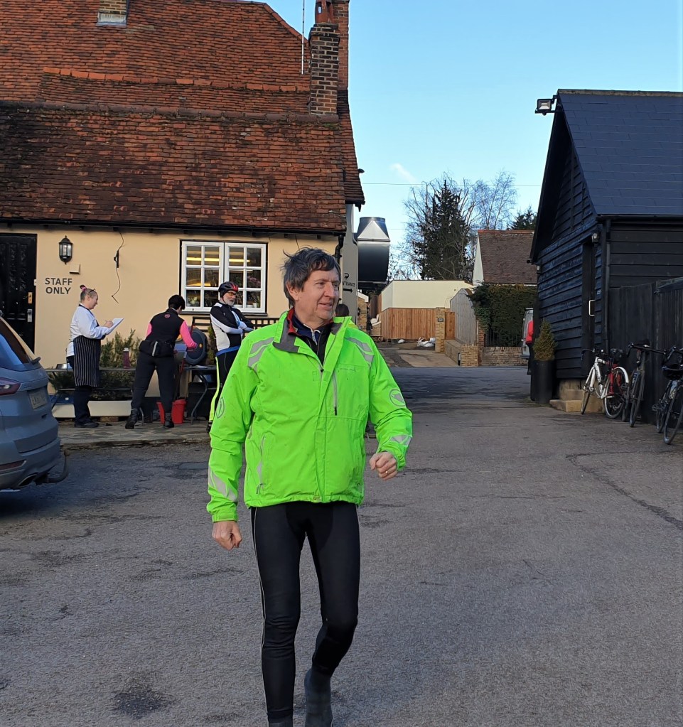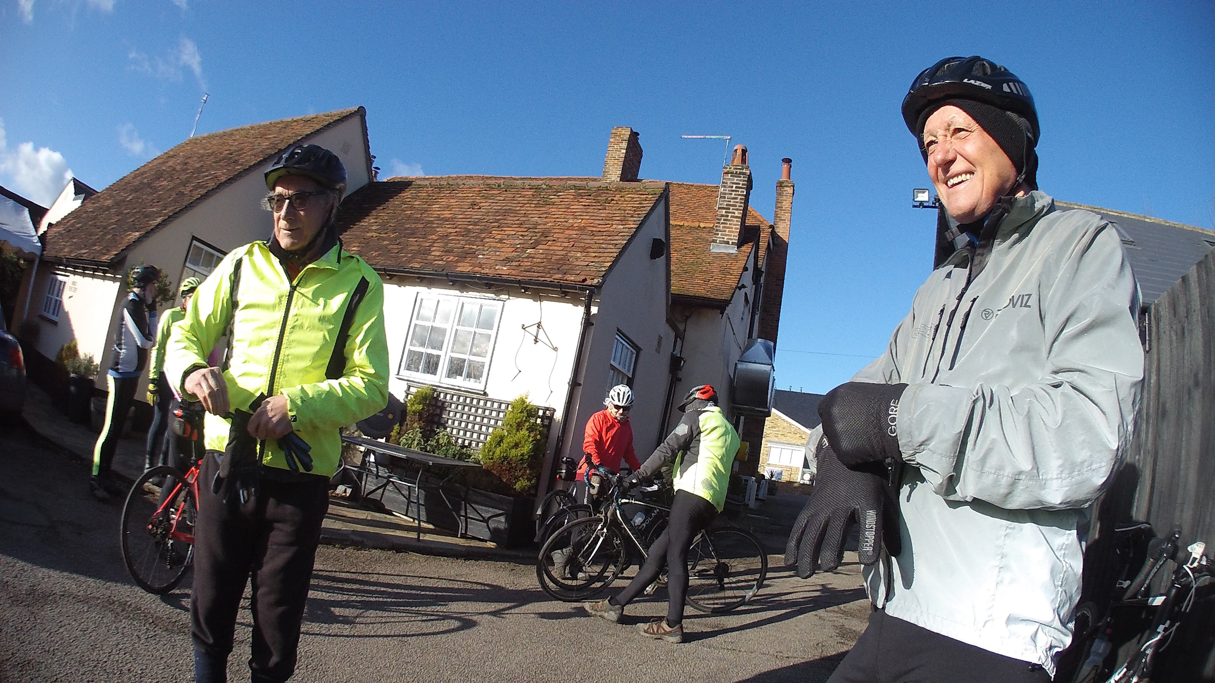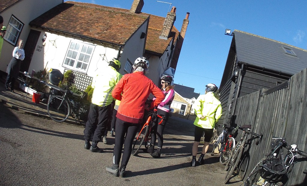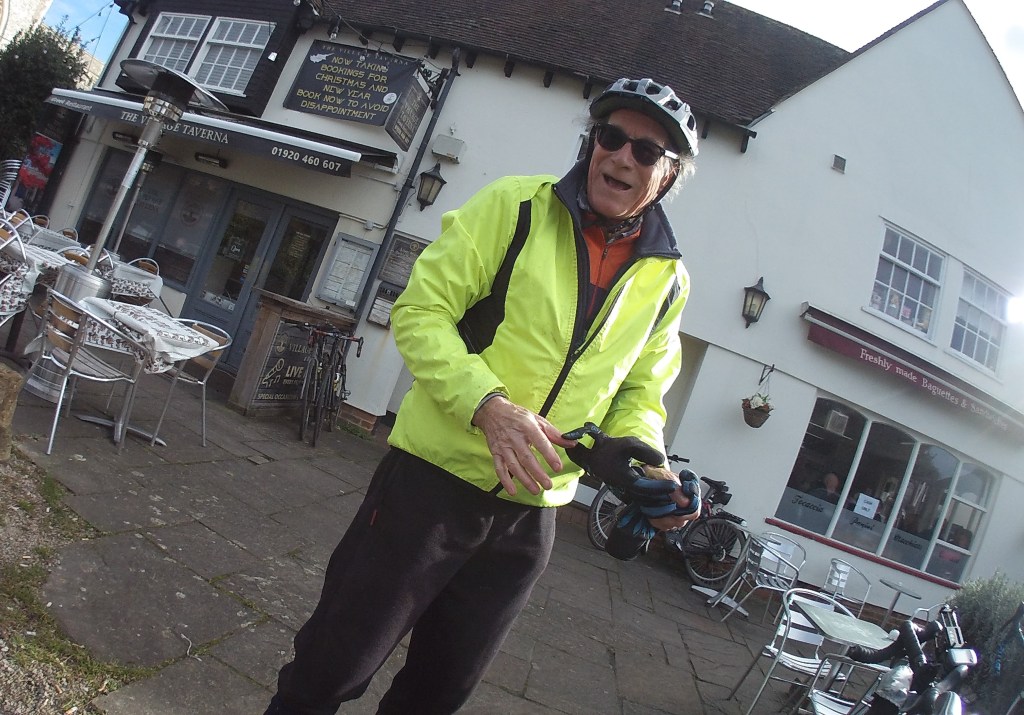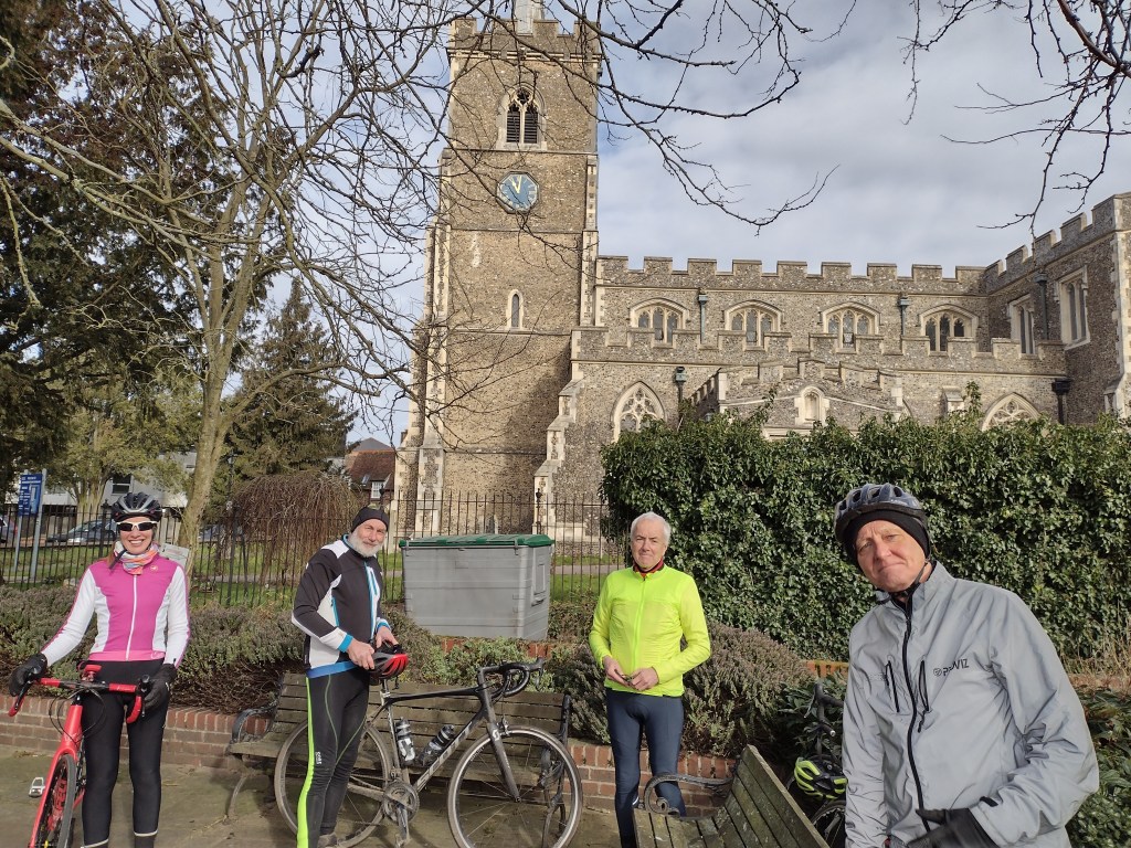 Stopping for coffee in Ware was very pleasant, as usual, most choosing to sit inside to warm up a bit. Andrew was left out in the cold, however, on account of his Covid avoidance measures prior to departing on a cruise around the Caribbean.