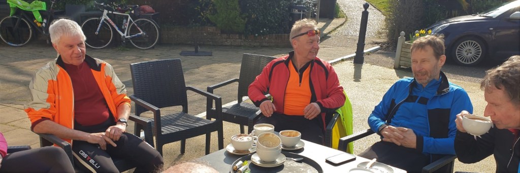 After last week’s abandonment due to the threatened bad weather and the waterlogged roads (which still didn’t deter three Windmillers from taking to their bikes and it certainly didn’t deter the many more that turned up at the Cock Inn for lunch ! – I digress), it was business as usual this week. Maurice had laid on gorgeous spring weather for a jaunt round the quiet lanes of Suffolk.