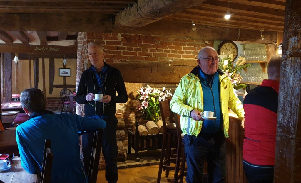 Maurice, Howard, Sandra, Simon (recently returned from Tenerife), Jeremy, Tom, Geoff, Victor, Alan, Sandra and Charles pitched up at the ever welcoming Plough at Rede for coffee and to place food orders.