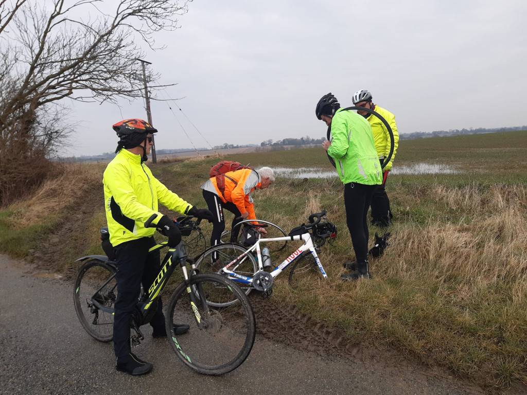 The route passed mainly without incident except for Tom, cycling with the last group, who suffered a speedily repaired front wheel puncture on the normally traffic free road to Somerton.
