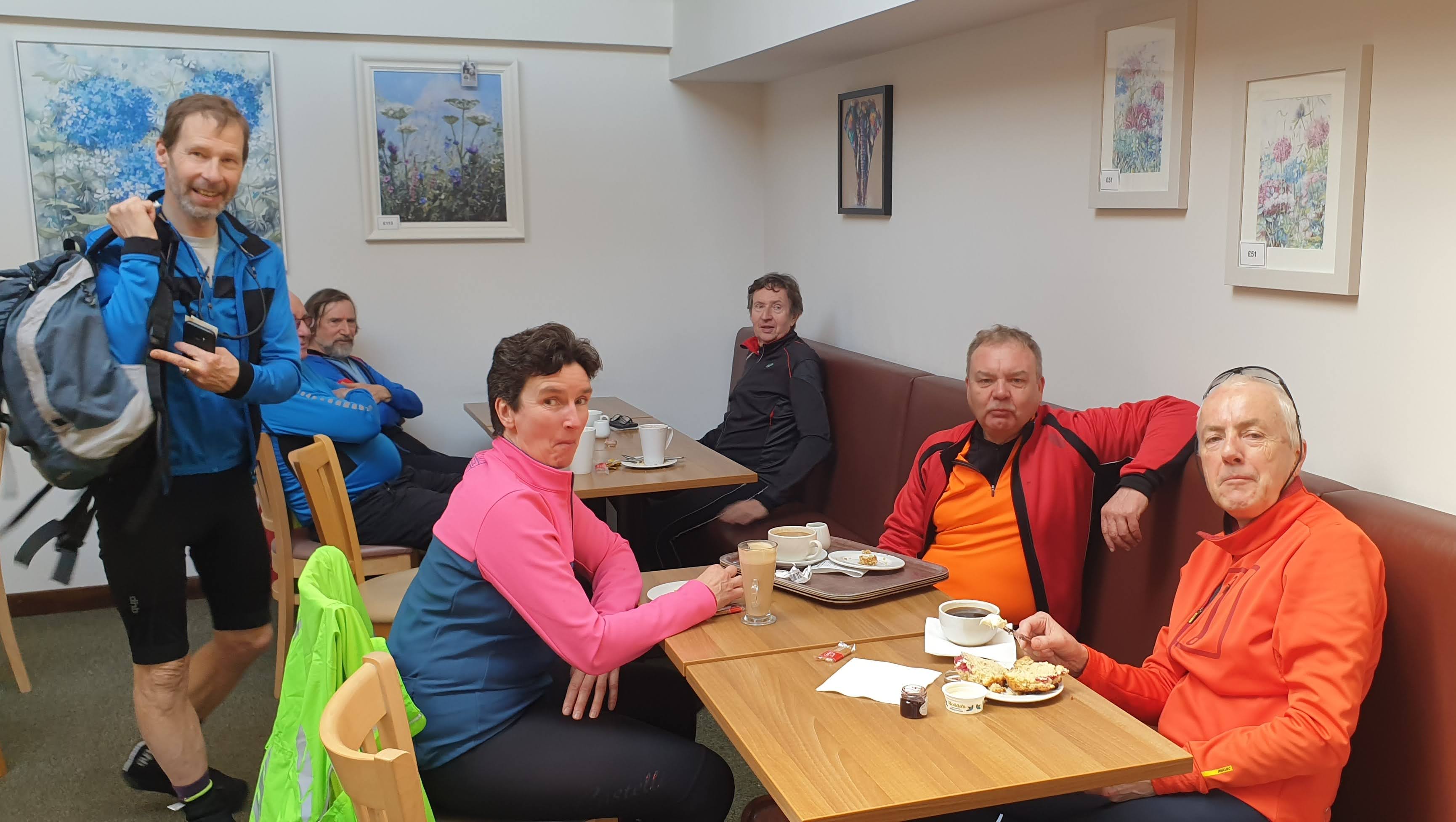 Seventeen miles in, we were eager to top up our caffeine and sugar levels and pulled in for coffee and cake at Waresley.