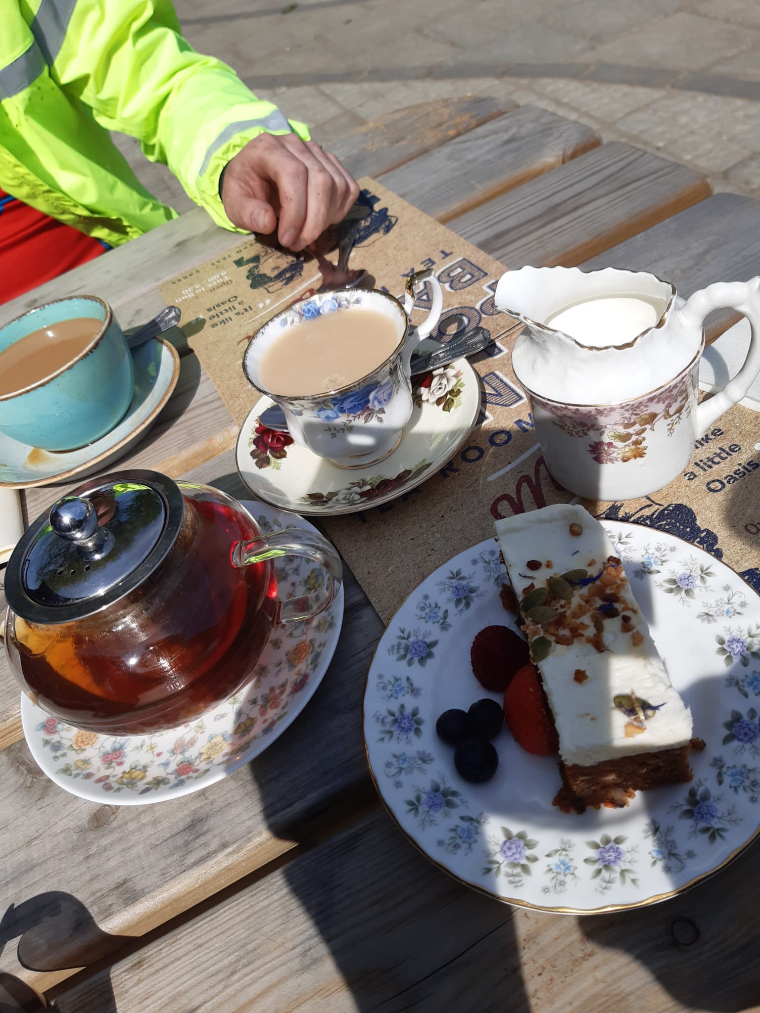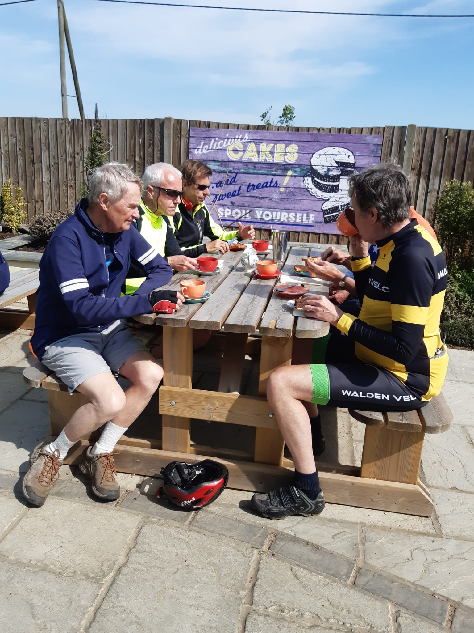 The Ickleton mob got wind of this once Andrew’s Group C had arrived making us feel somewhat guilty that we hadn’t helped, but then too many cooks spoil the broth, don’t they? Eventually, and looking somewhat puncture-worn, Maurice’s group arrived and soon got stuck into excellent coffee and cakes at Poppy’s Barn.