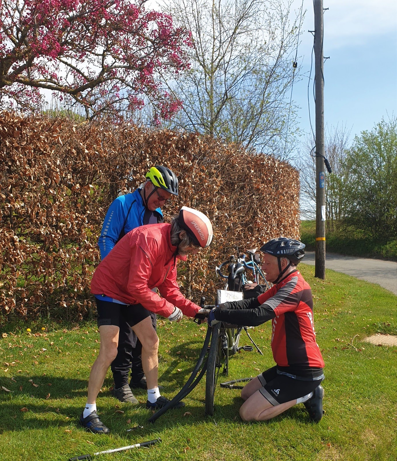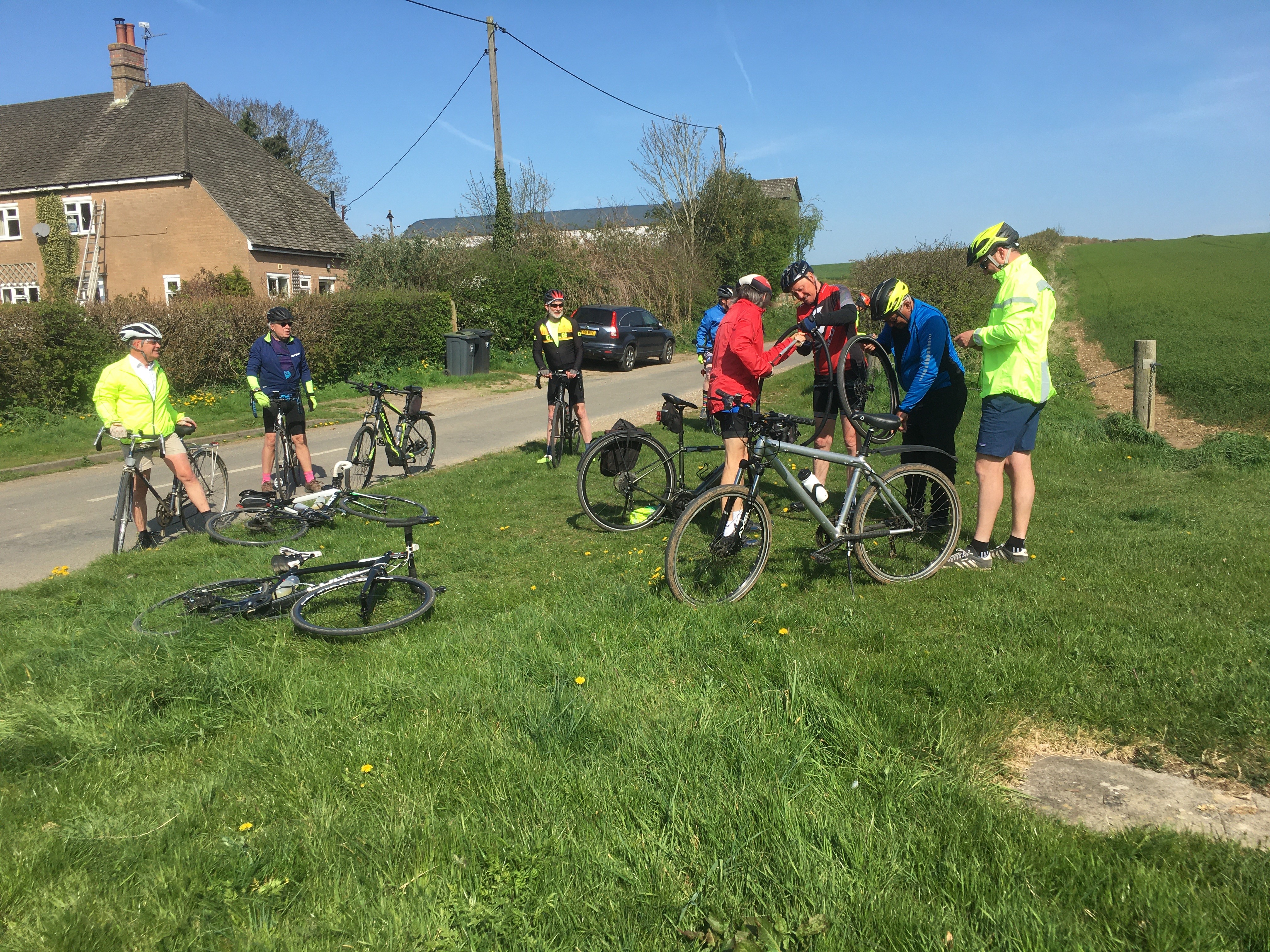 Roger came to the rescue with some super patches. As it appeared all was under control some of the group resumed the ride leaving a few behind to carry on the repair.