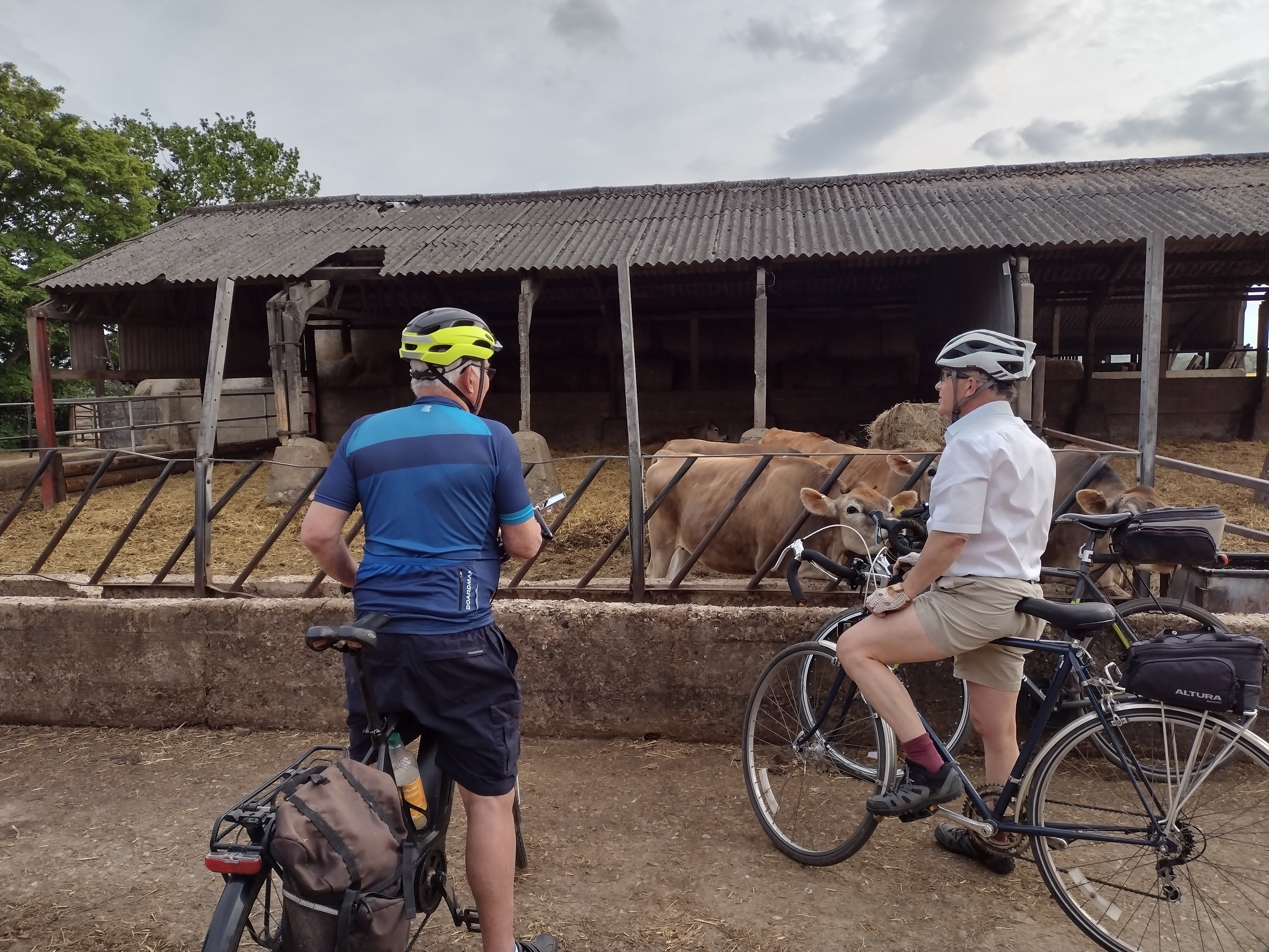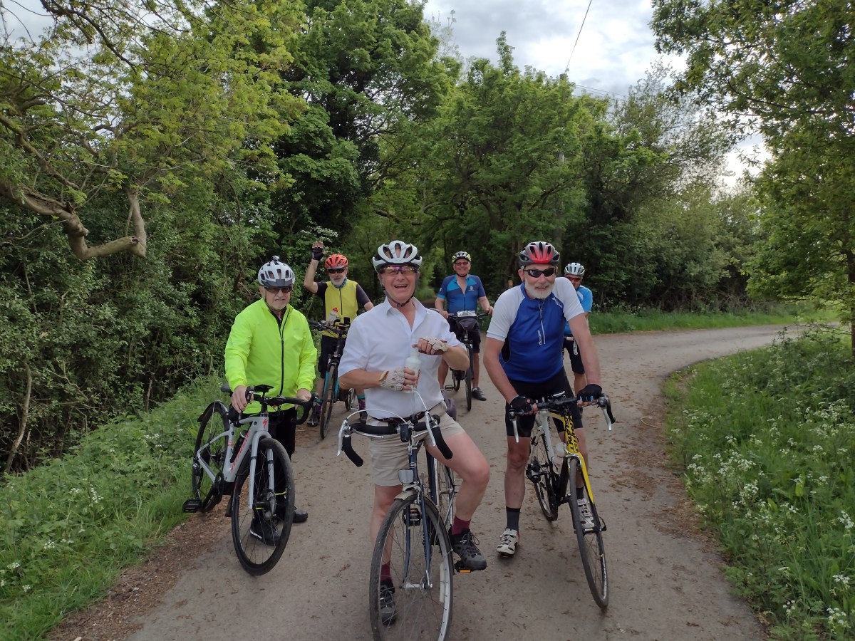 Maurice incorporated almost every local byway into this ride but whilst getting some gravel and pothole practice in before leaving the car park of The Red Cow he fell off his bike in a rather classy slow motion sort of way, gaining a few scratches in the process. Windmillers soon came to the rescue and hauled him and his bike up (getting out from underneath a heavy e-bike is no mean feat), and no other damage was done other than to his ego. All agreed that pushing bikes across loose gravel was probably the best bet.