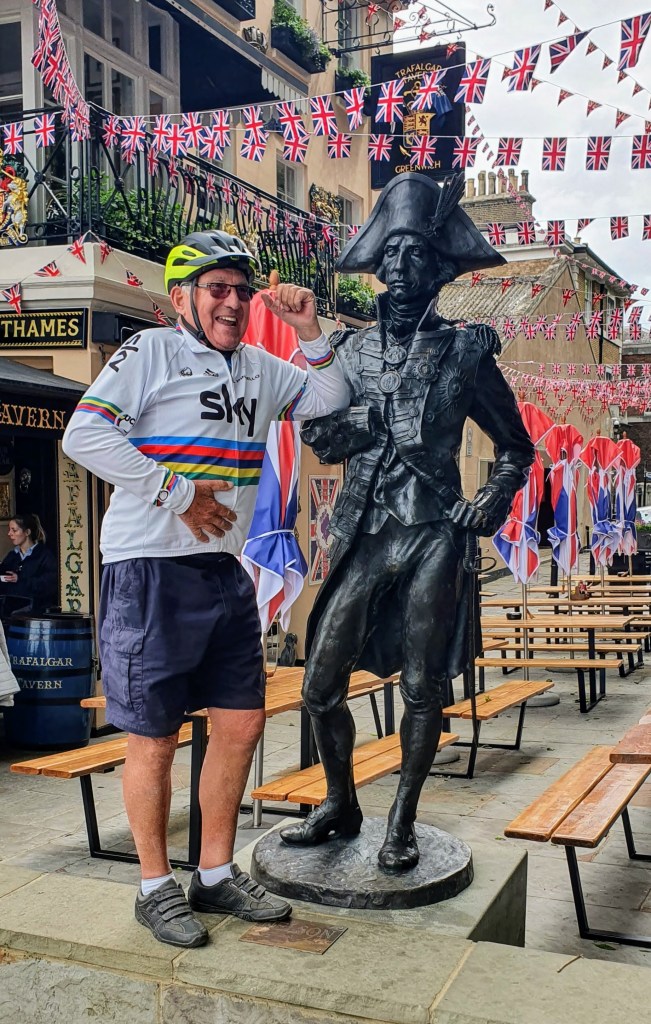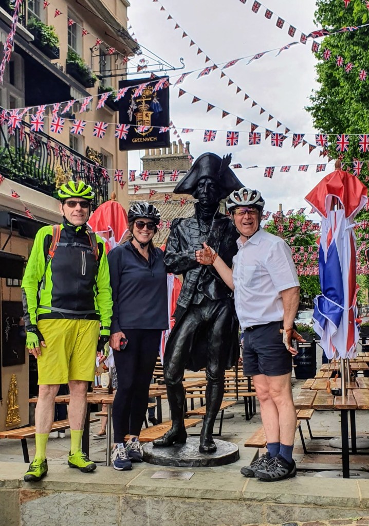Alighting on the south side, we followed the cycleway around the Greenwich peninsula to the Old Royal Naval College – pausing for the usual photograph with Nelson – and the Cutty Sark.