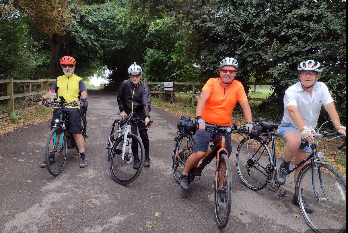 We started from the Bull at Lower Langley. That evening music was to be made by 20 musicians who, the landlord bemoaned, would only drink one pint each. Nick arrived on time having acquired a new cycling computer adding to the variety of gadgets on his bike, including radar. Rod was delayed by leaving the house without cycling accoutrements and had to return to get them. Anyway, it’s safe to say that with Alan armed with Garmin, and Rod and Nick baring clusters of electronics, we were very adequately equipped for a pleasant trip round our local lanes. Myself, I had invested in a new tyre and felt a warm glow, which I knew would not be punctured by future events. A warm glow of satisfaction which only Schwalbe Marathons can provide. Martin completed this high-tec peloton which cycled, through a refreshing, light shower, around the following route.