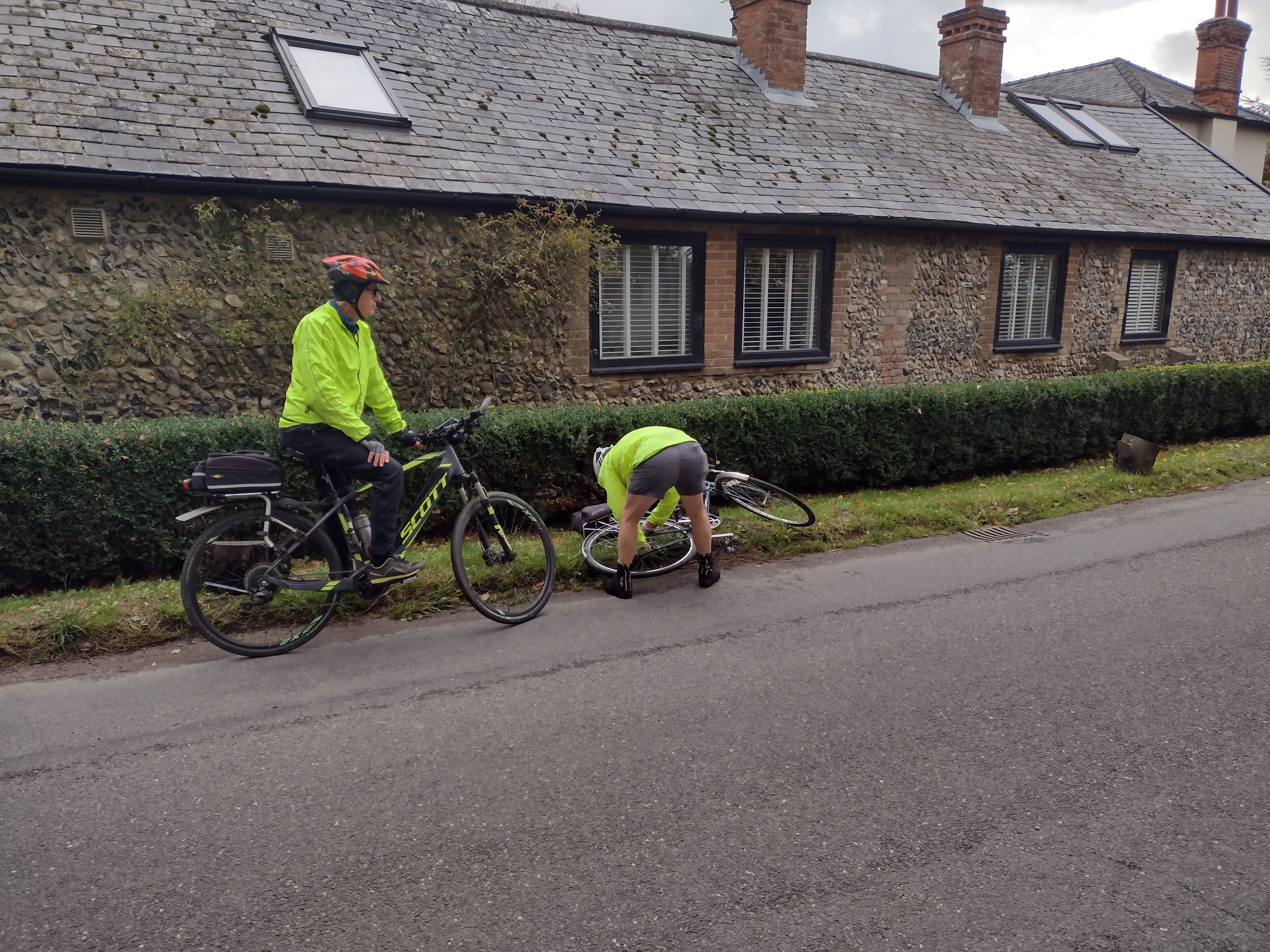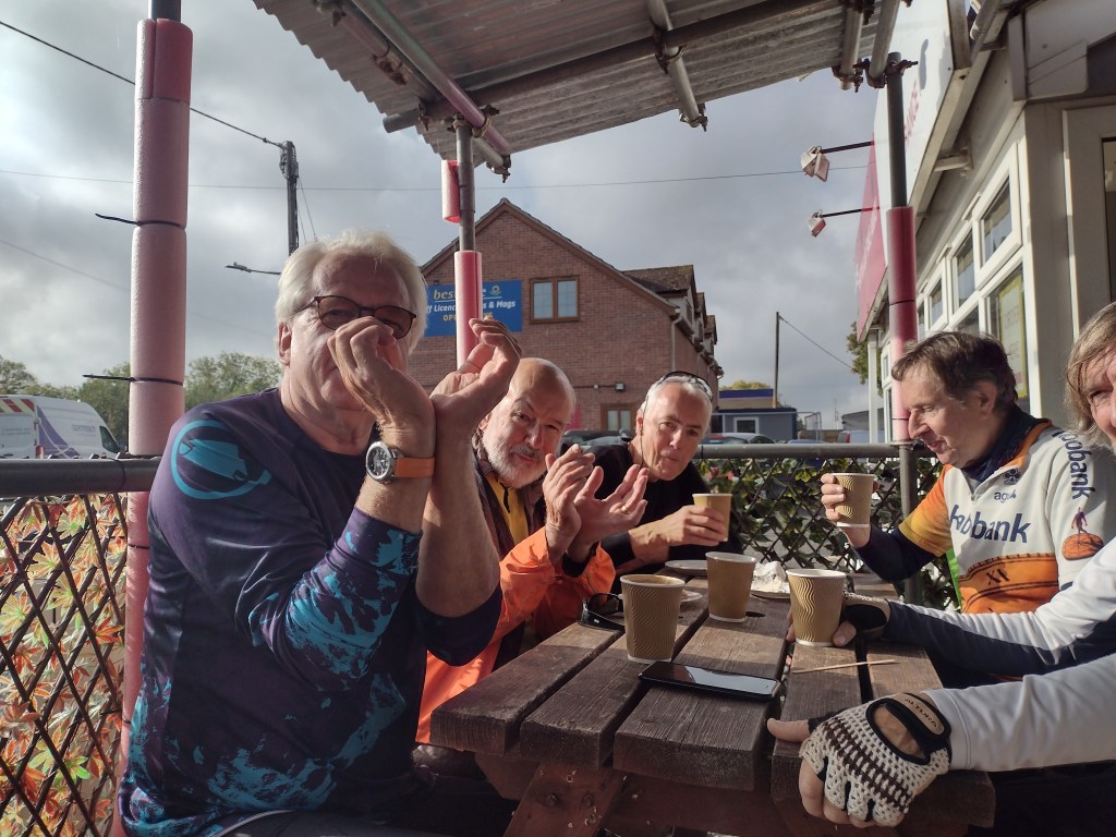 Not long after starting Group C came across Group B mending a puncture in Brian’s front wheel, expressed their sympathies and then swiftly moved on as everthing seemed to be under control. Brian must surely be in the running for the 2022 puncture prize? Has he converted to Schwalbe Marathons yet we wondered?