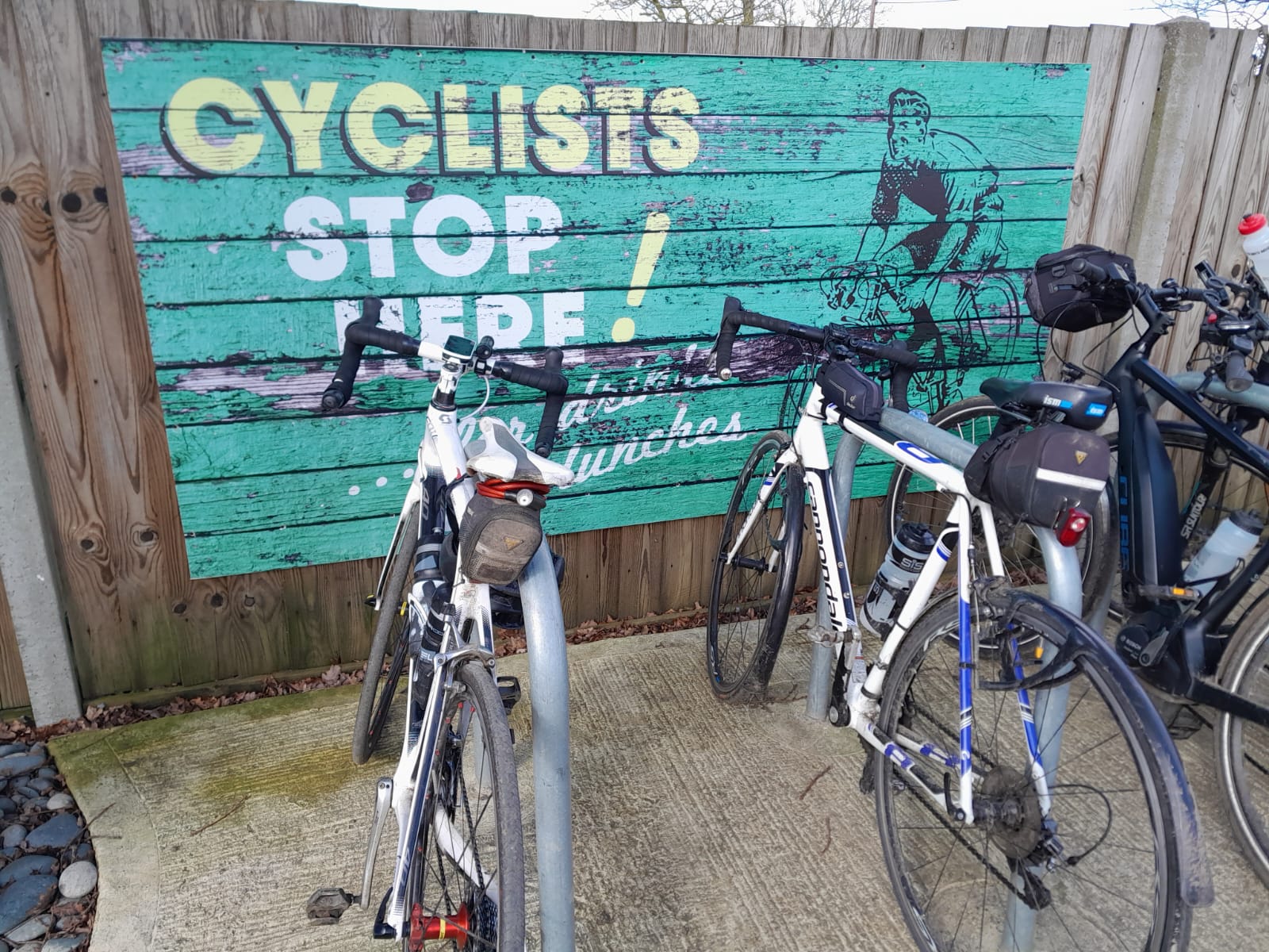 At this point, we should welcome back to the UK the Professor, Simon, fresh home from his two month cycle free sabbatical in Costa Rica and Guatamala. The road condition here might seem similar to Guatamala but the fresh NE breeze and the toughest route we’ve done for a while came as a shock to the system. One person for whom the conditions shouldn’t have been a surprise was Victor, but he still bravely (or stupidly) turned out in shorts again ! Hope you’ve both recovered from tired legs and frozen kneecaps respectively.