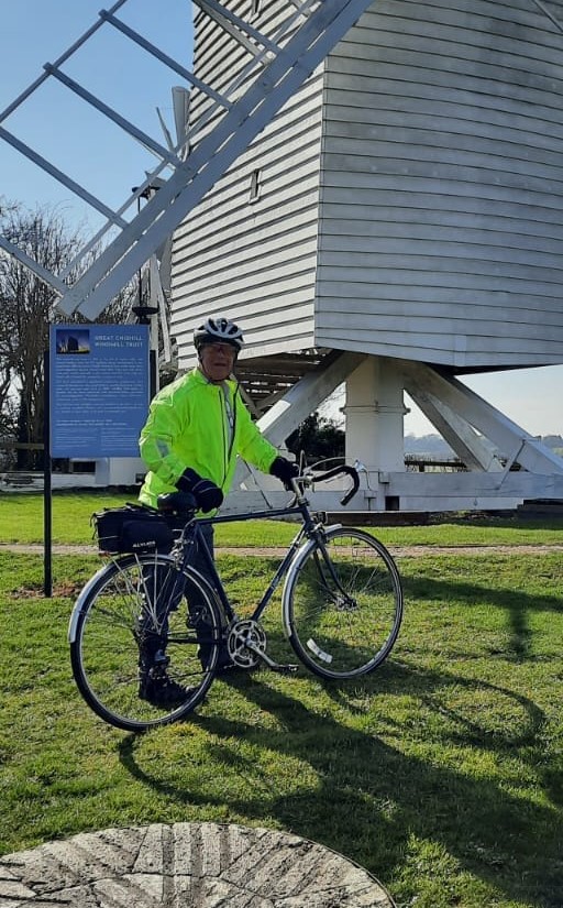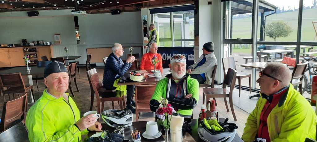 Half way into the ride, Poppys Barn tea room was busy on arrival. Luckily Rod had had the foresight to reserve a table in advance so it was warming coffees all round before setting off on the still hilly return leg. On the way back we stopped briefly at THE windmill at Great Chishill – the windmill from which the club derives its name (One of 7 surviving open trestle mills, built in 1819). A short series of ups and downs led back to Royston, then through the town and back to the Heath Cafe. The excellent pre-ordered lunches arrived in short order and were enjoyed by all on parade along with some much needed restorative beers. Many thanks to the organiser, Rod.