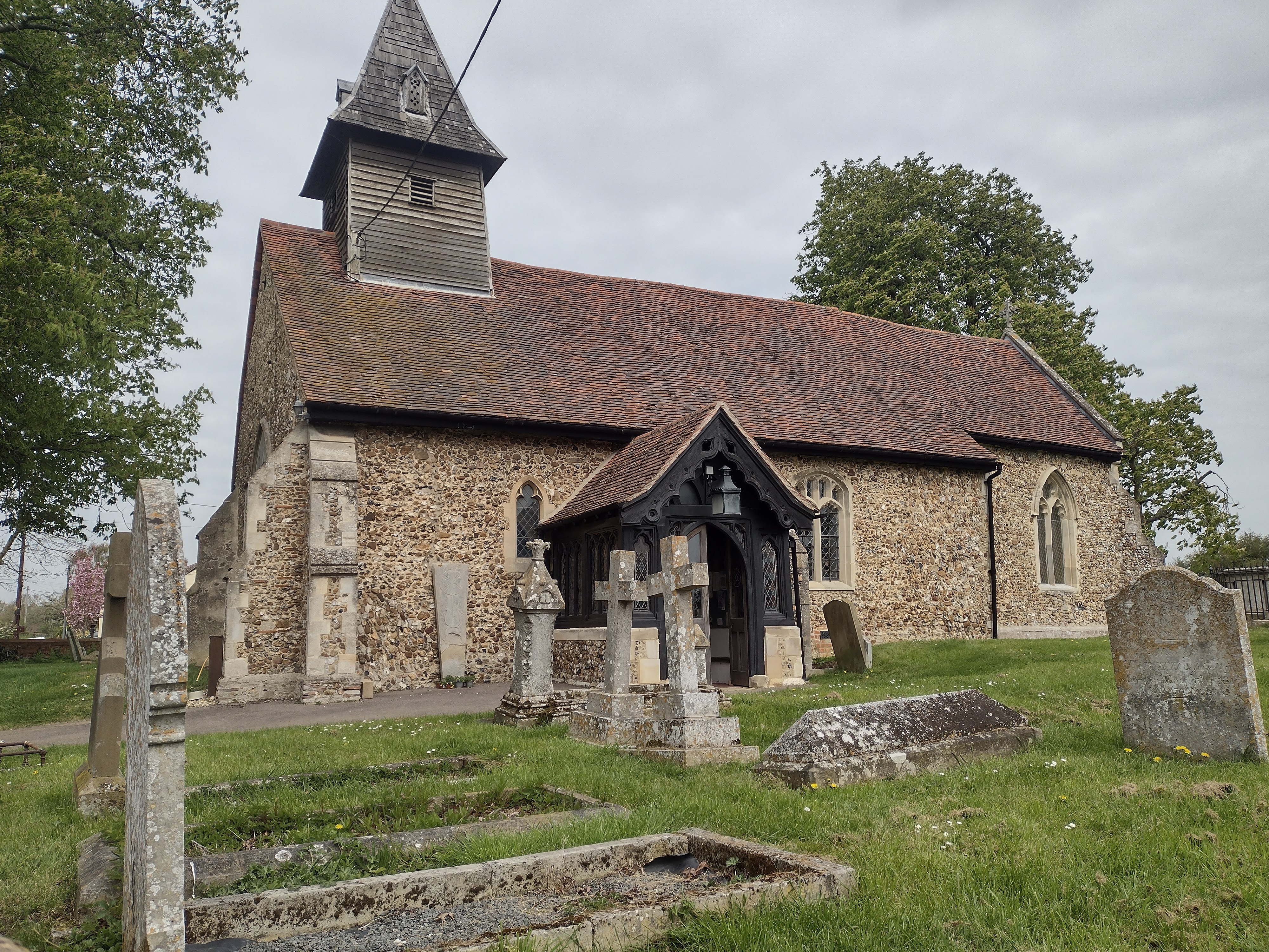 This is St John the Baptist church in Little Yeldham, dating back to the 12th century and built largely with flint and pebbles. Several other churches were seen to be built with red bricks.