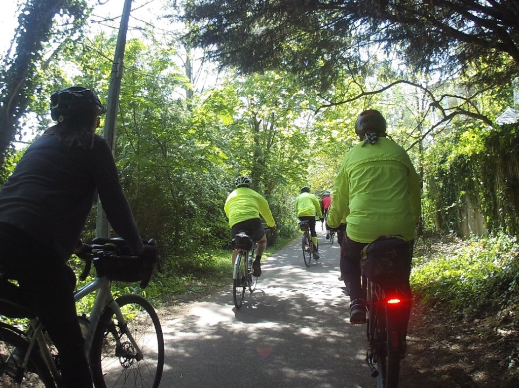 Although mostly on paths, it was still deemed prudent to split into three equal groups. In time honoured fashion, the first ‘equal’ group set off with 7 riders, the second with 6 and the third with 5. Hmmmm.