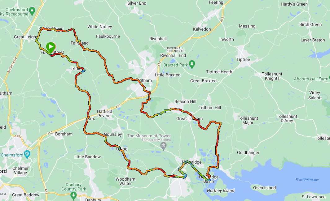 Windmillers are very familiar with the north west corner of Essex. Some, indeed, call it home, and hardly a month goes by without the peloton visiting Saffron Walden, Thaxted or Finchingfield. So it’s always good to get out and explore the further reaches of the county, in particular, its many inlets and estuaries, courtesy of Martin, who swears he’s from Sussex but who seems to have native knowledge of these parts.