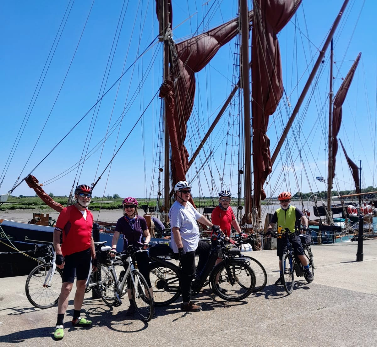 Most years Martin organises a bike ‘n boat trip to Brightlingsea, but it’s been nigh on three years since he took us to Heybridge Basin, a visit of mixed fortunes with Mike, poor chap, ending up in hospital, and Maurice, lucky man, trousering a £20 note he found lying in the road.