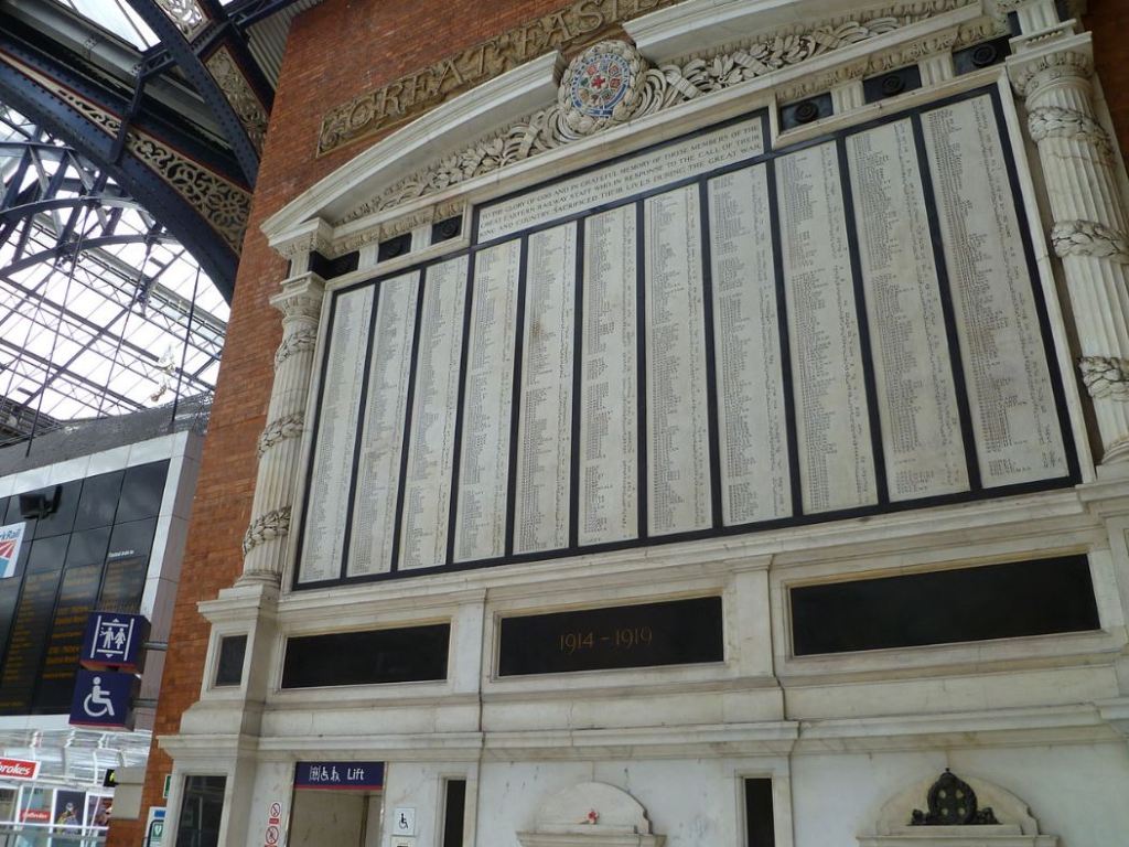 Memorial at Liverpool Street station to GER staff who died during the First World War.