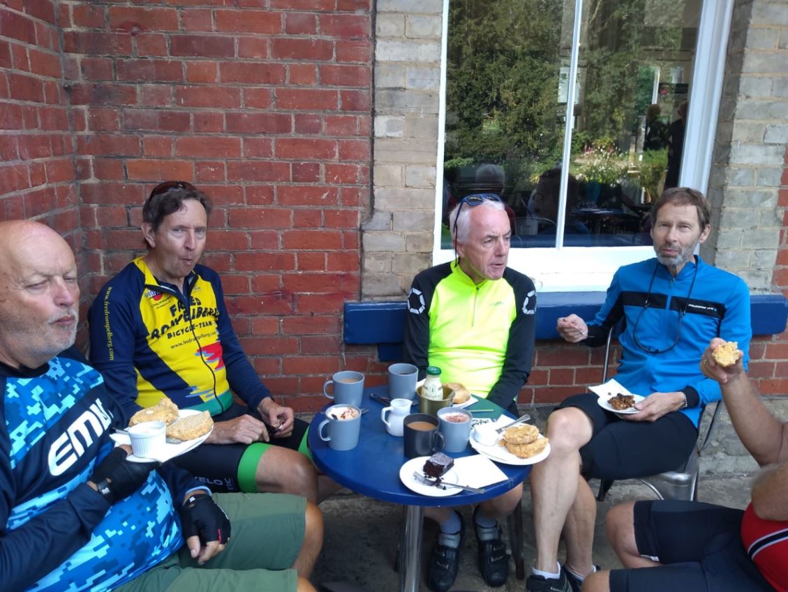 Martin(2), Howard, Brian, Victor and Nigel provided a gentle reintroduction to 30 miles routes. I always find the miles go by more easily when you can chat along the way. The other thing that makes the second half easier is a BIG CAKE. The scones at the old railway station at Clare fitted the bill perfectly. Some members of our group even considered missing lunch. But later changed their minds.
