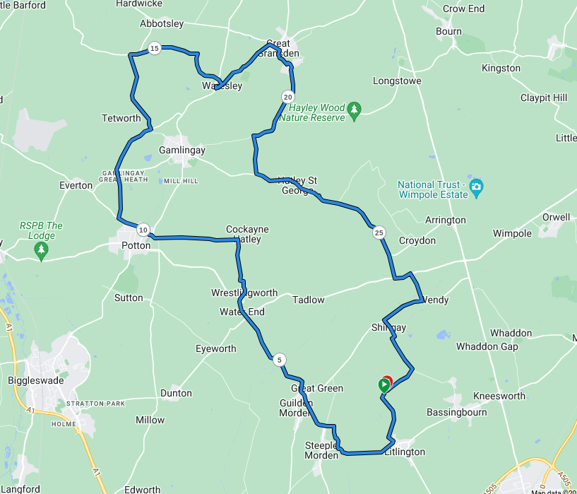 So it was good news to hear that Maurice had planned Thursday’s ride to start and finish at Pat’s pub. Blessed with unseasonably warm weather, he led the way out of Abington Piggots and, via The Mordens and Potton, on to Waresley where we pulled in at the garden centre for light refreshment, mindful not to overdo the cake lest we spoil our appetite for lunch.