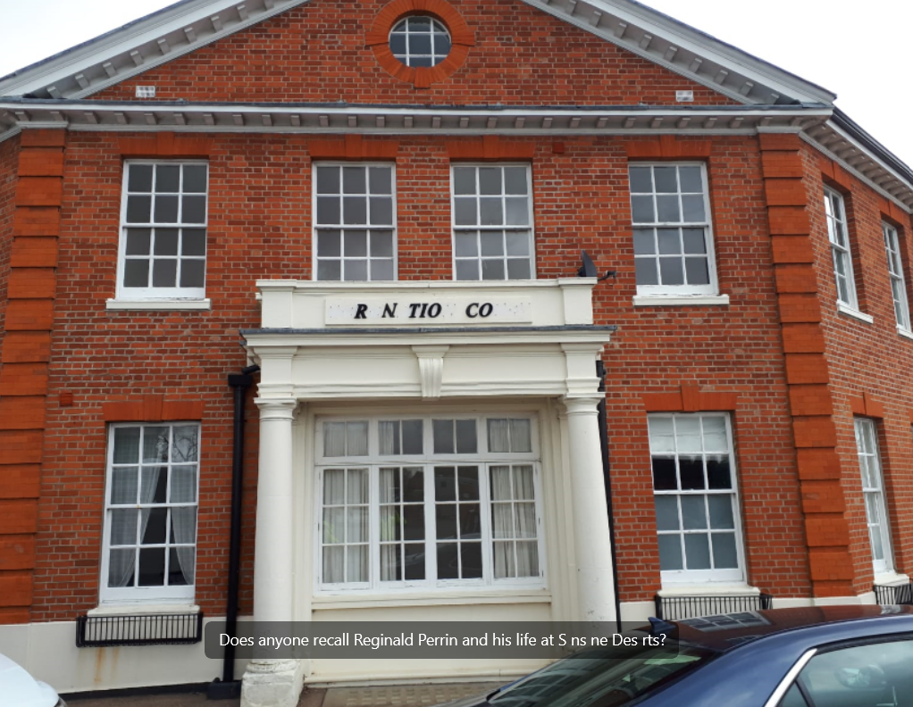 The second photo perhaps requires more explanation. In ‘The Fall and Rise of Reginald Perrin’ his place of employment ‘Sunshine Desserts’ gradually loses letters from above it’s head-quarters doorway in step with Reginald’s declining desire to carry on with his pointless job. Something which struck a cord with many viewers. Certain other aspects from the series also entered into national conversation including; “I didn’t get where I am today …” from the boss and ‘super, fantastic’ in response to stupid ideas from fawning subordinates. The series also gives a subtle nod to surrealism (Dada), whenever his mother-in-law is mentioned, Reggie visualizes a hippopotamus trotting along. Classic subversive British TV, that would mystify an international (American?) audience I think.