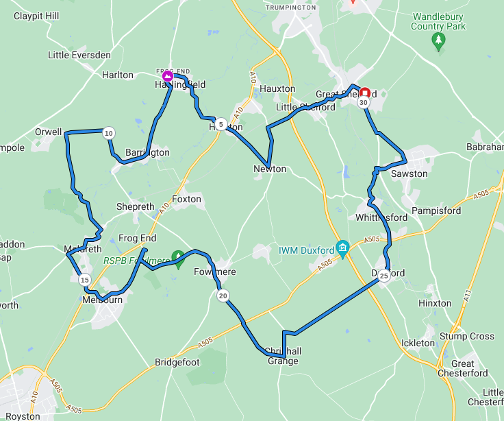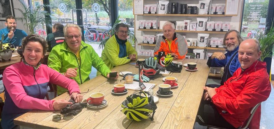 Setting off from The Three Horseshoes, Stapleford, Jeremy led the peloton via Haslingfield, Barrington and Melbourn to Shepreth, where we pulled in at Hot Numbers for coffee, cake and the usual lively conversation.