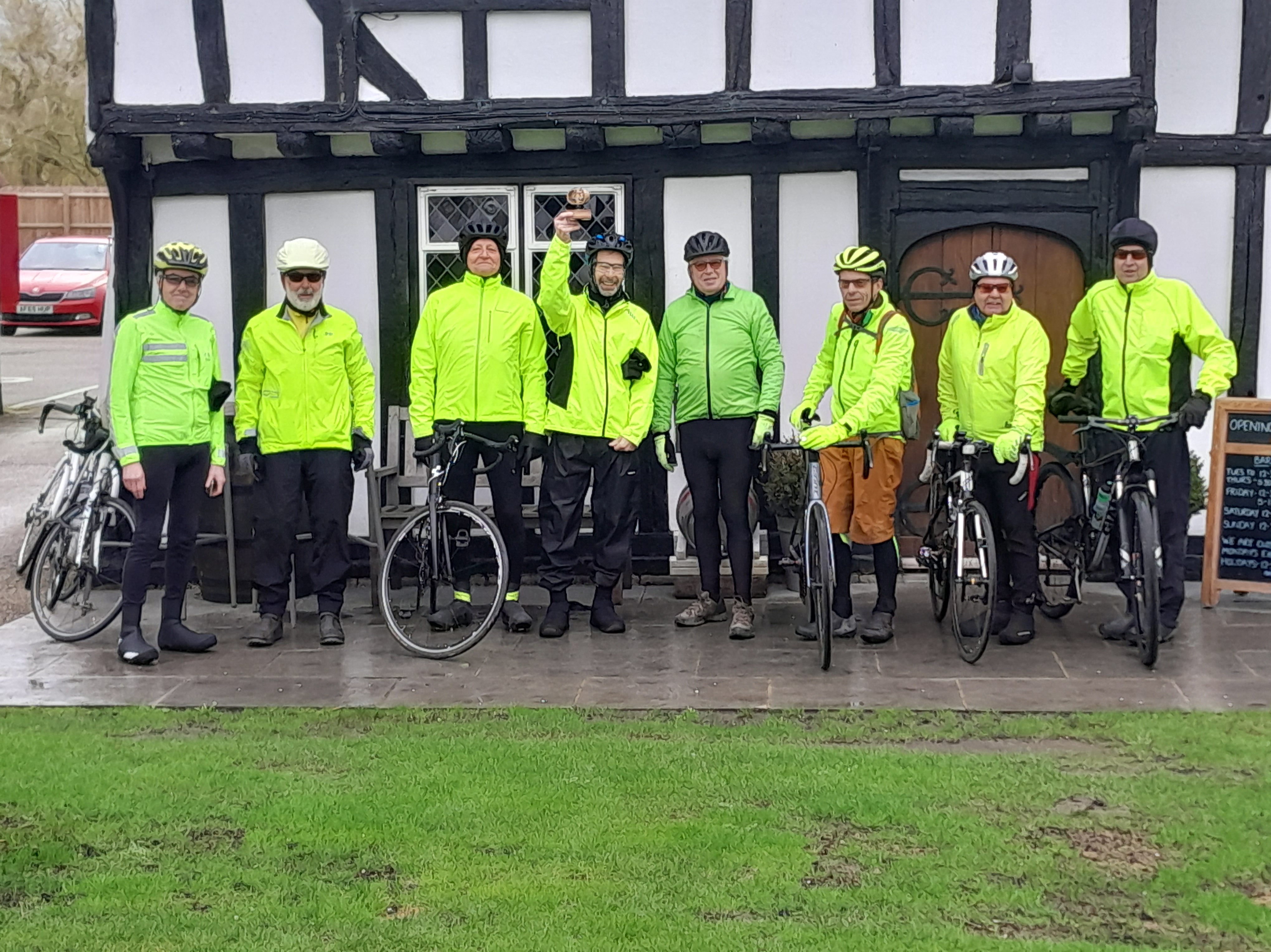 Back at the Royal Oak, we were ushered into the bar with a woodburner. Even that didn’t alleviate the chill (possibly not helped by the fact that it was now loaded with soaking wet cycling gloves). We were joined at lunch and beer by Geoff and Ken who had done the sensible thing and driven straight there.