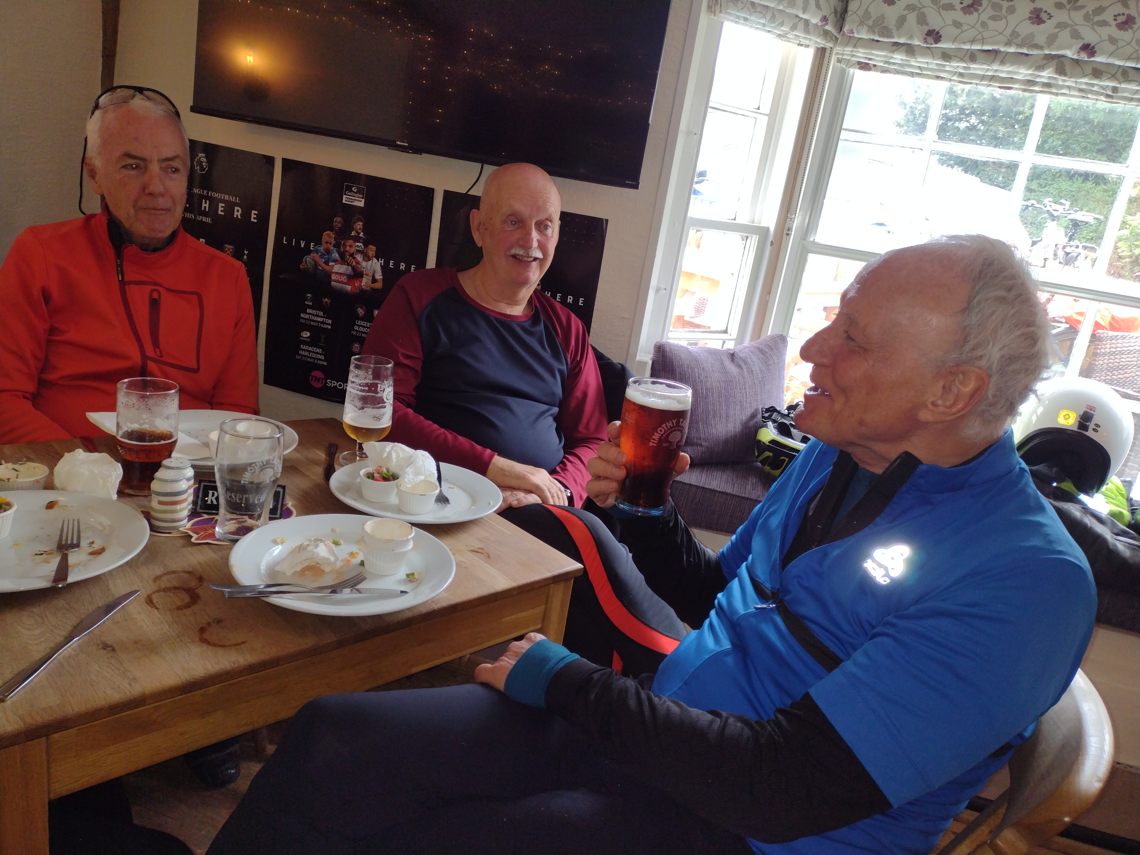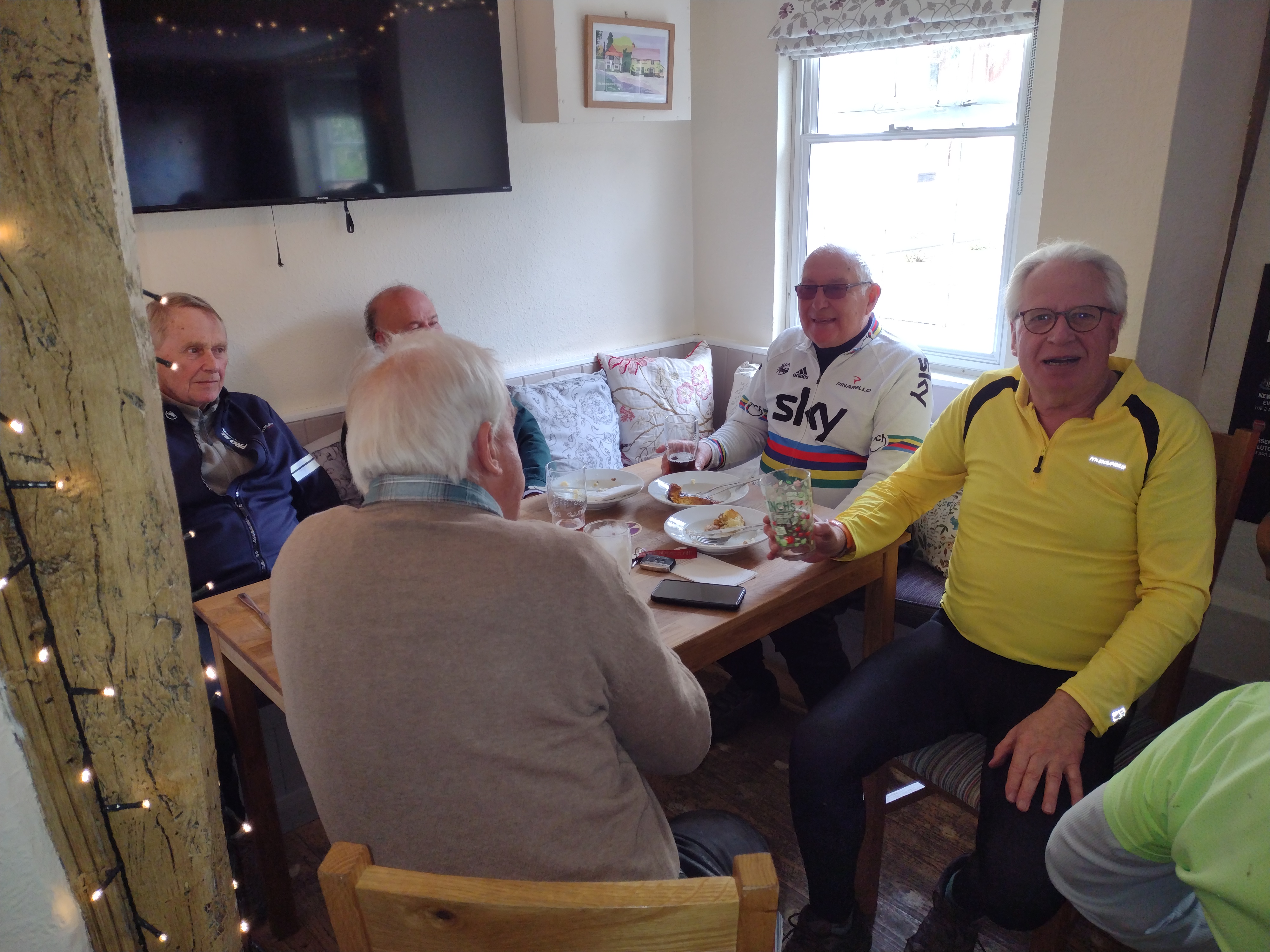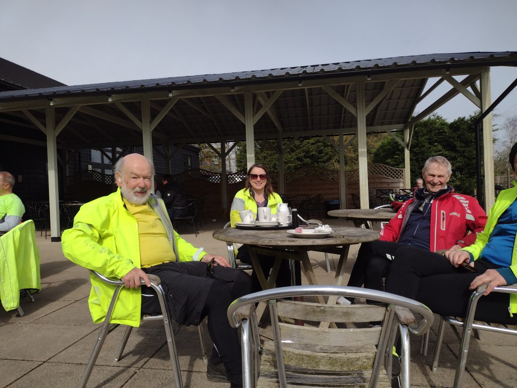 Graham chose a delightful route through quiet Essex lanes to celebrate Roger’s birthday. Accompanied by Rod, Maurice, Andrew, Ken, Keith, Simon, Deborah and the duo of Martins, the route started at an old favourite The Fox & Hounds in Steeple Bumpstead and took us on an anti-clockwise route via Great Bardfield, The Blue Egg for coffee, and through lots of Ends – Bridge End, Church End, Rotten End, Blackmore End – until the final end back at The Fox & Hounds for lunch.