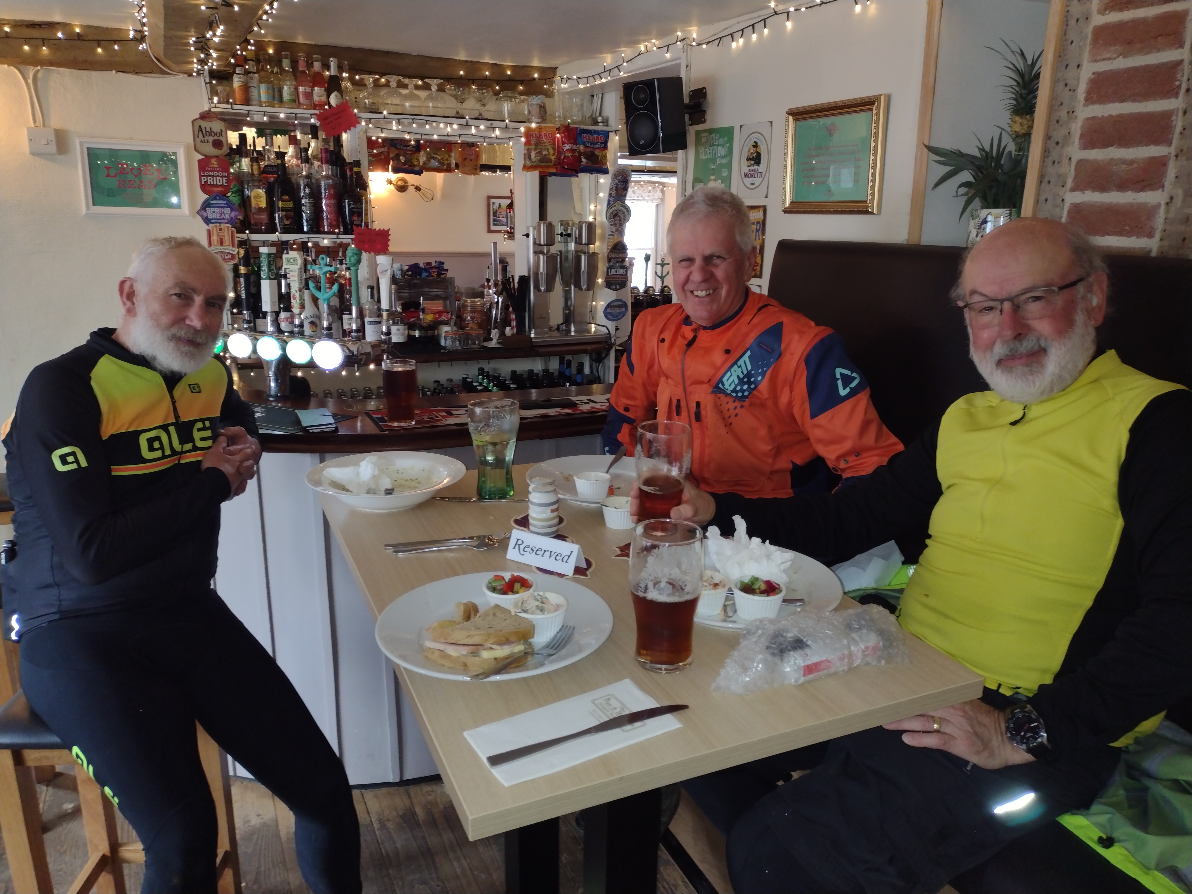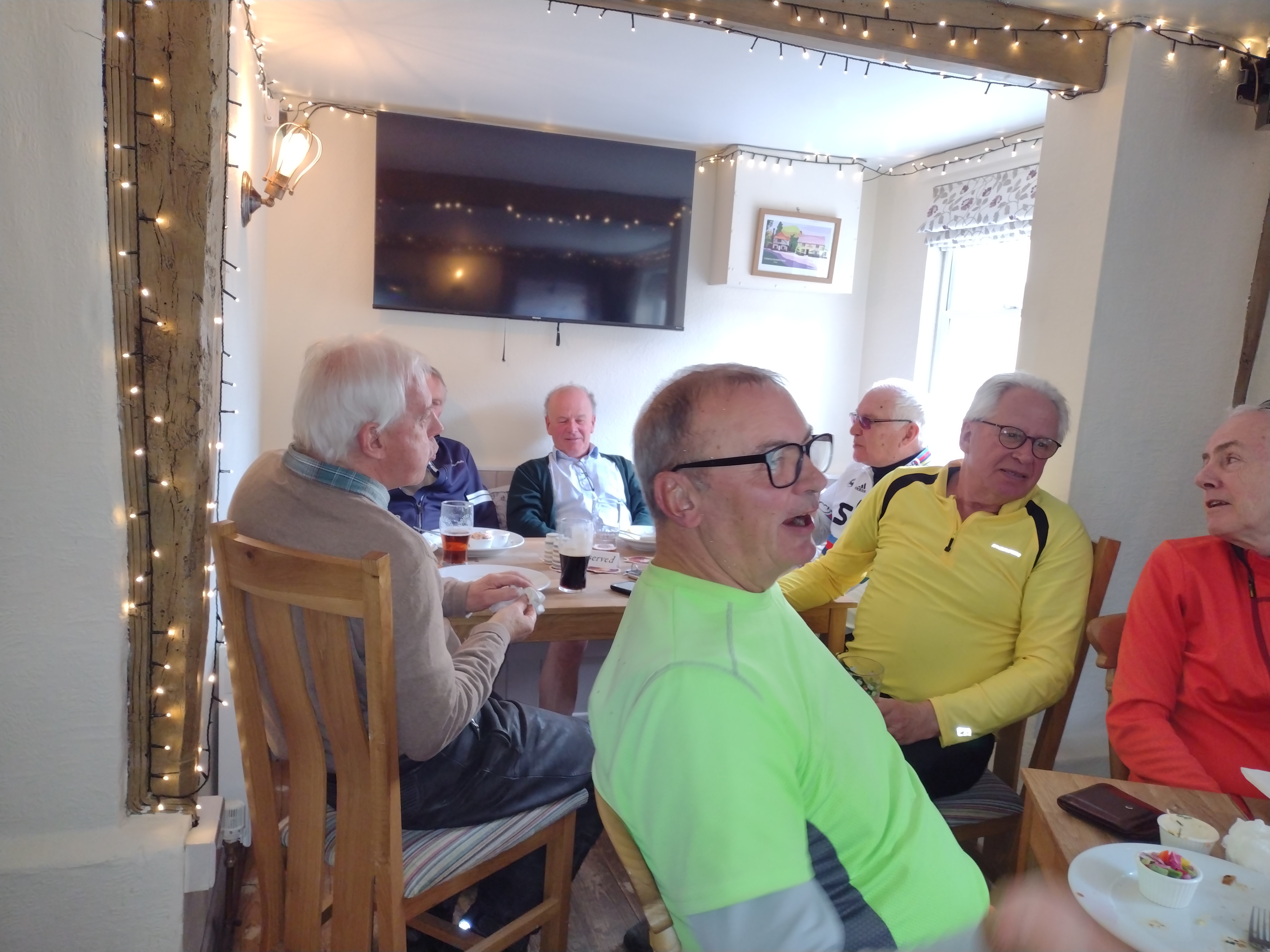 On we went, thinking that the first group was probably stuck into a pint and having lunch by this time, only for Martin’s electrics to play up again and a few minutes were spent sorting them out whilst Graham and Deborah went ahead. Eventually all 3 of us reached The Fox & Hounds together to find that lunch was indeed in full swing.