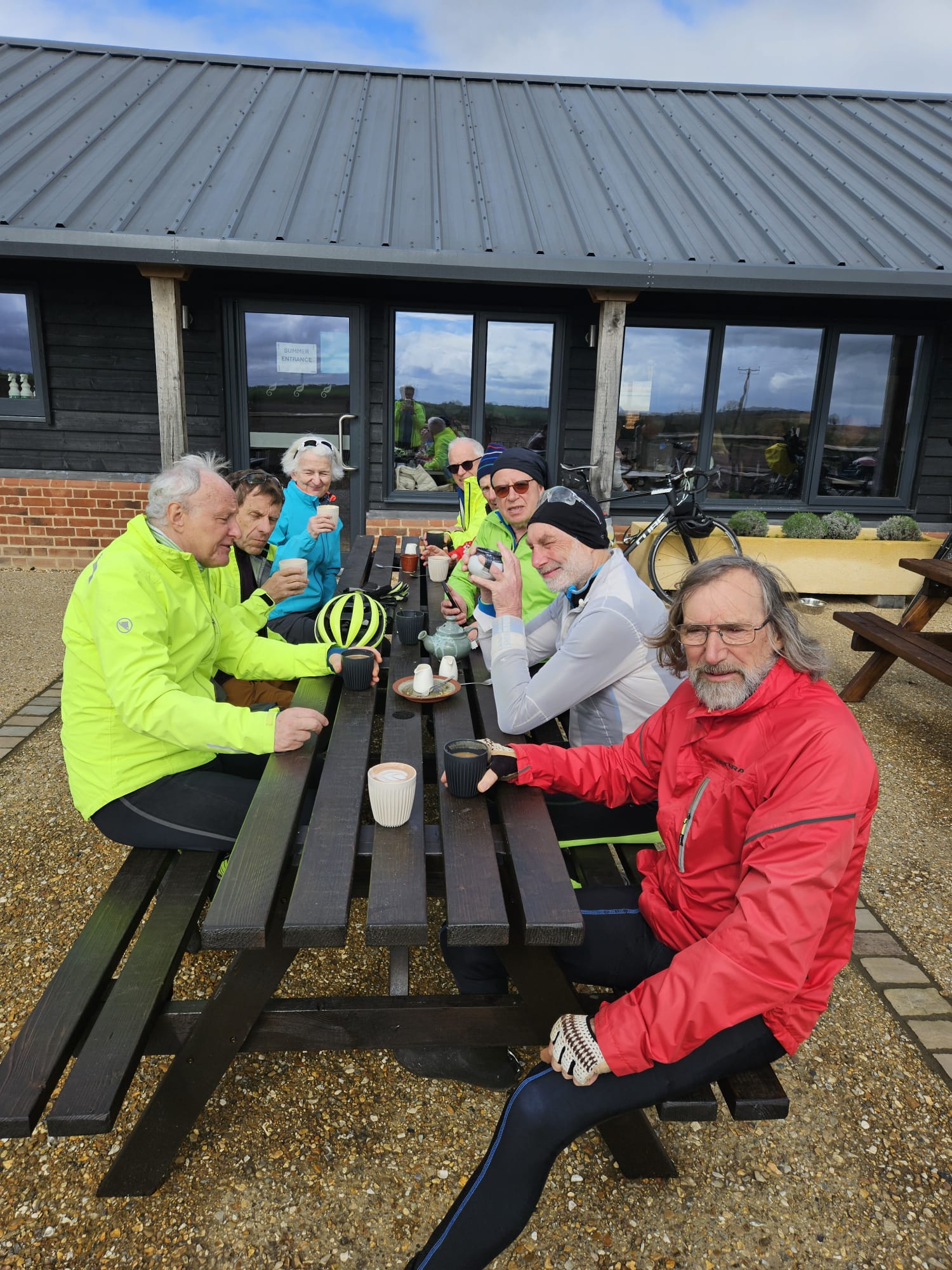 A somewhat shorter than usual blog due to the author missing the second half of this week’s ride and lunch due to lingering coughs and sneezles. The rapidly diminishing start list bore testament to the fact that I’m not the only sufferer. (that, and the potential for some heavy showers, which never materialised). What we really need are some blue skies and sunshine to top up our vitamin D levels.