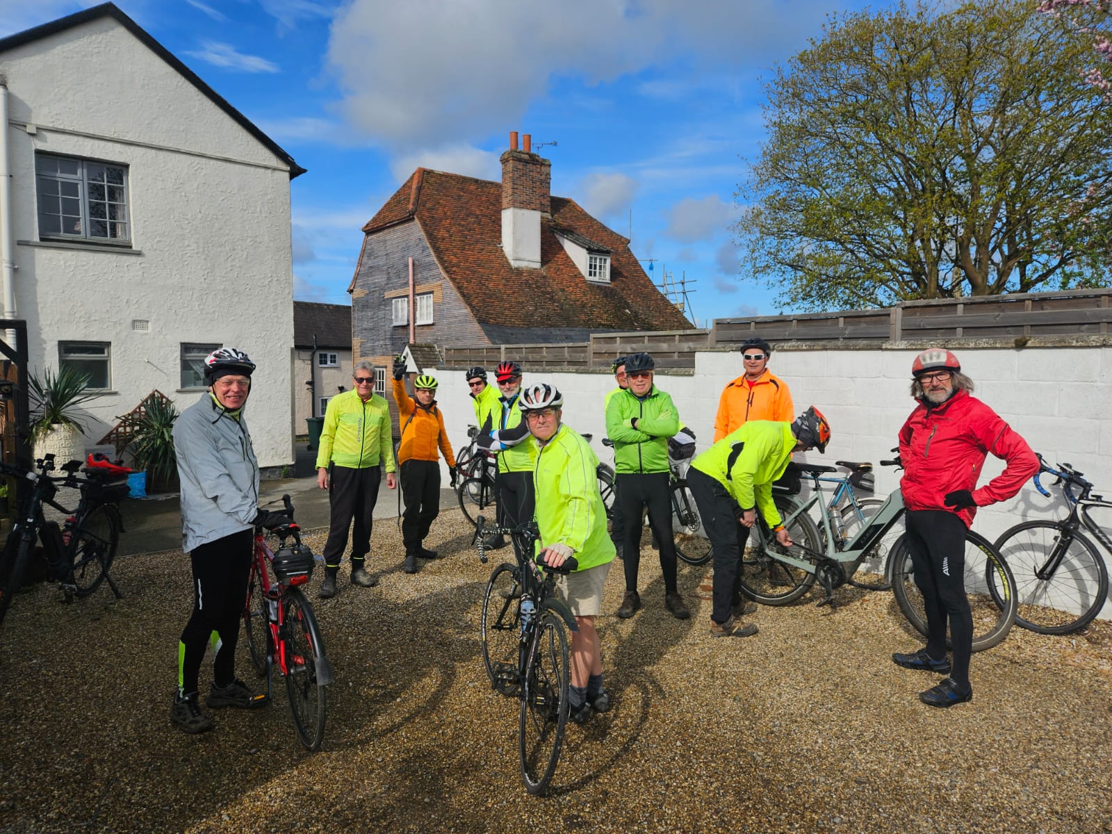 12 riders set off from the Maypole in two groups. Group A initially in front, only to be overtaken by group B at the first puncture. Group A retook and kept the lead through punctures 2 and 3 in group B and maintained the lead despite sustaining puncture 4 at the cafe stop and managing the full route down to Waltham Cross and a cultural tour of Great Bardfield.