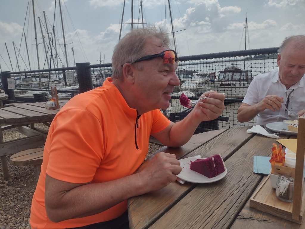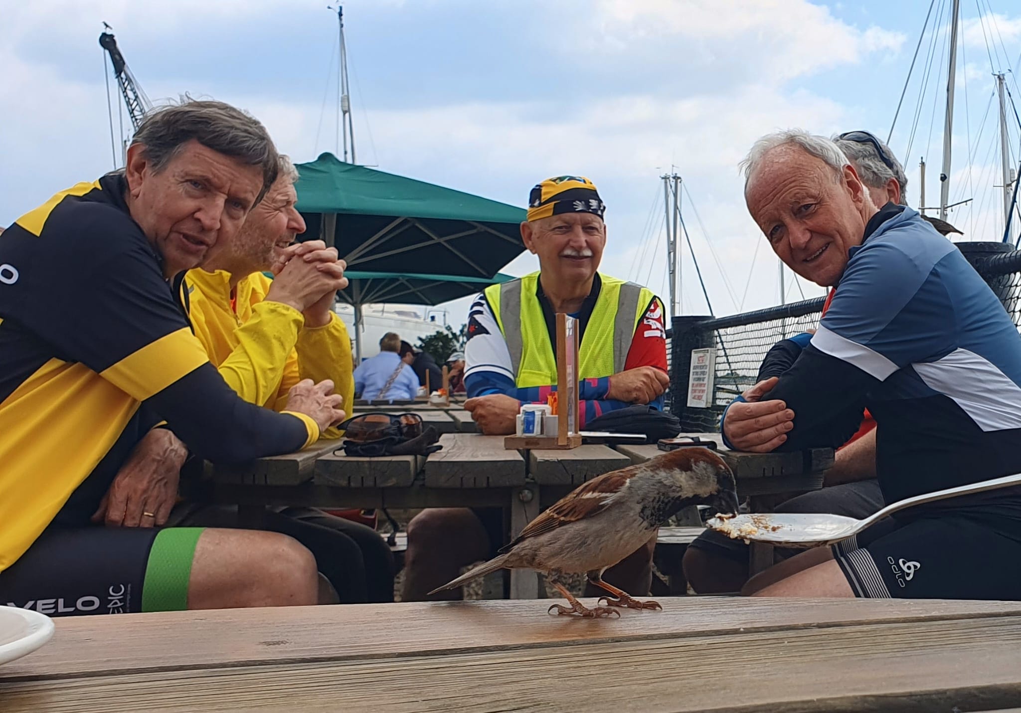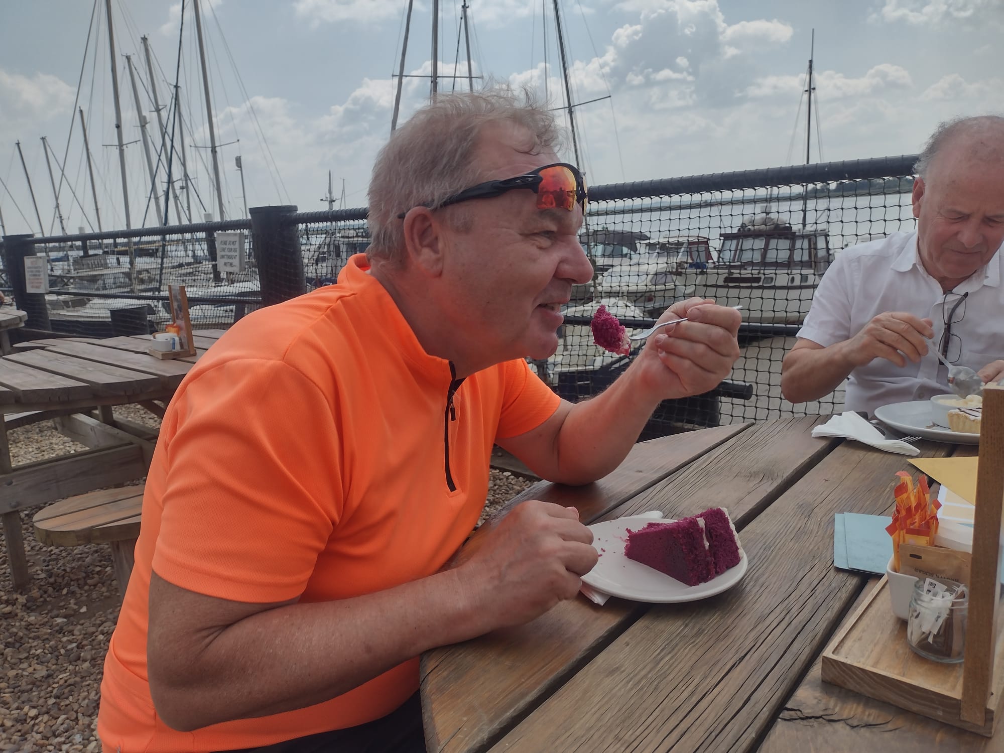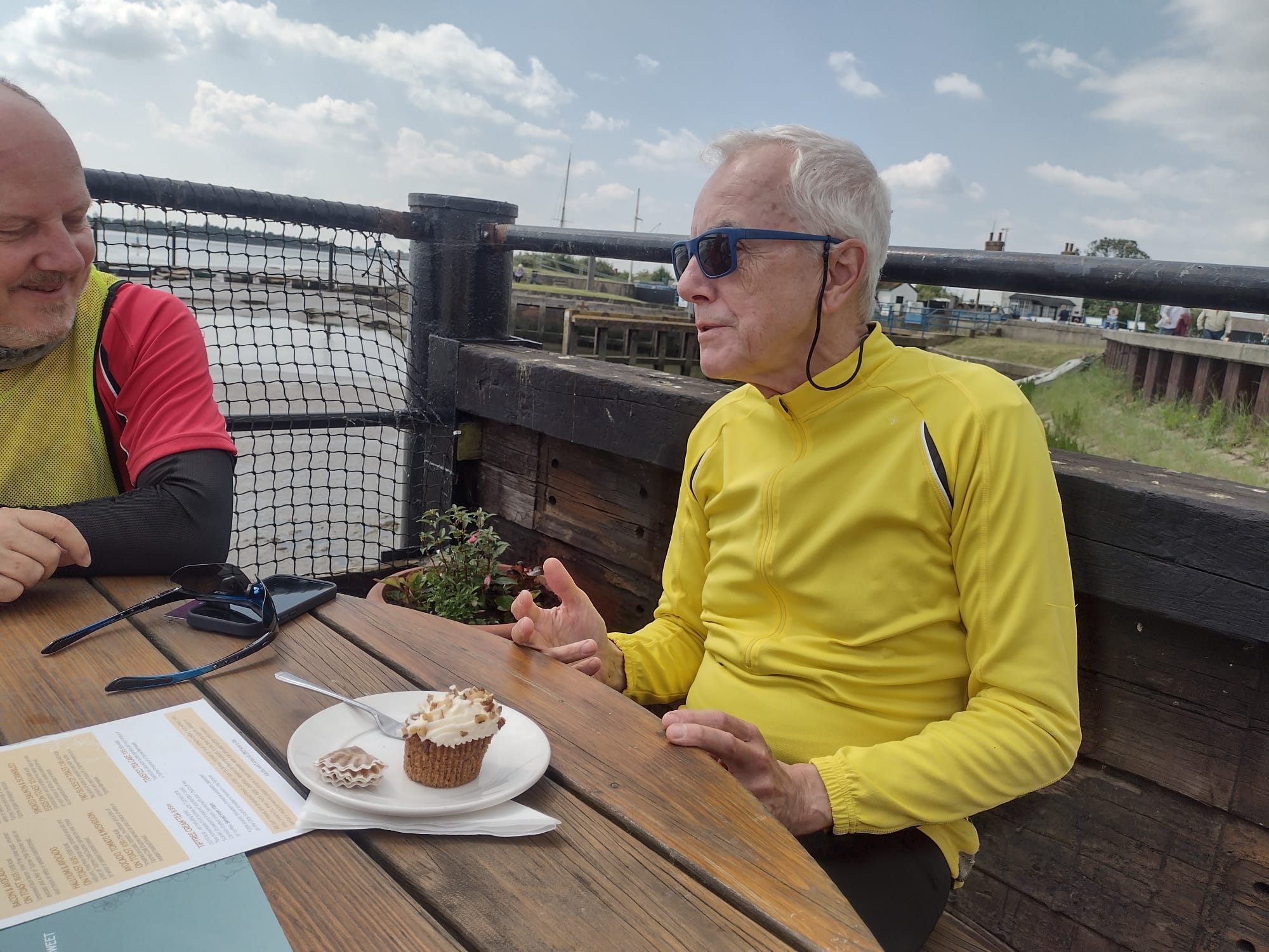 Coffee was at the Tiptree Tea Rooms at the water’s edge and was as pleasant as ever. The weather was still nice as Group 1 arrived but it deteriorated upon the arrival of group 2. We tried not to hold it against them and focused instead on keeping the birds at bay while we ate our cake.