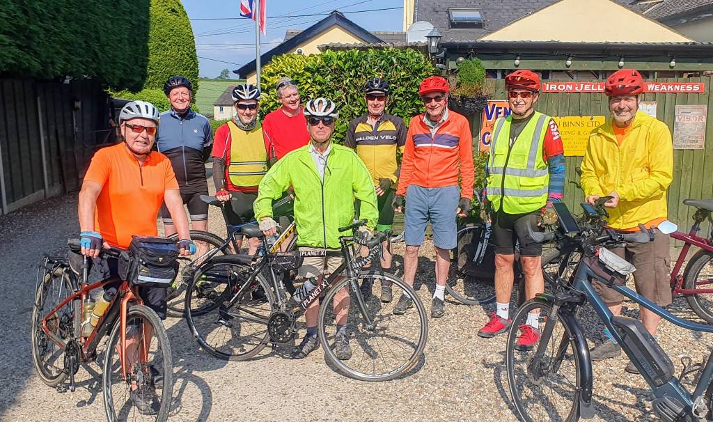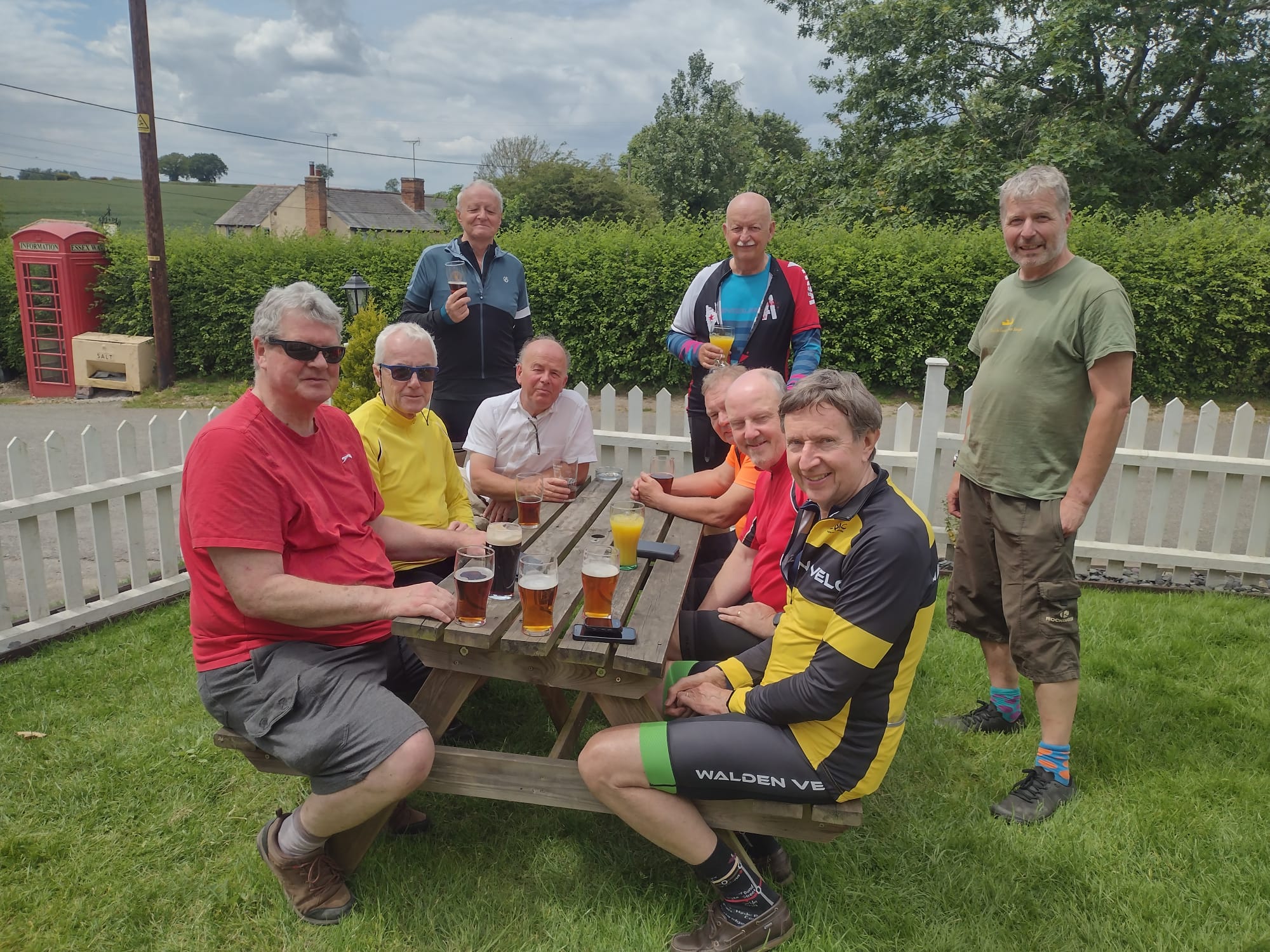 Warm sunshine had returned and with it the warm glow of another good ride completed by; Iain, Brian, Roger, myself, Martin B, Alan, Paul, Neil, Howard and recorded by the able photographer The Reverend Holy Moly Martin, organizer.