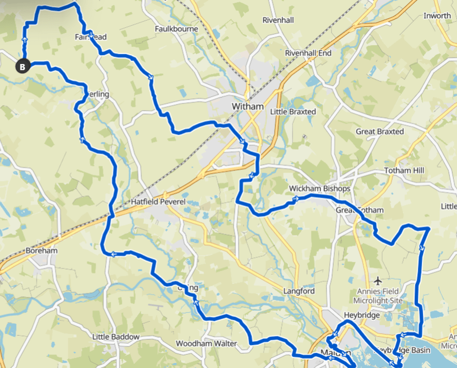 From the cafe you can look out to Osea Island. This is the endpoint of the Chelmer to Blackwater canal which was completed in 1796 and allowed goods to be brought in by sea to Chelmsford. Commercial traffic only ended in 1972. I thought the motorways looked a bit new round this bit of the country.
