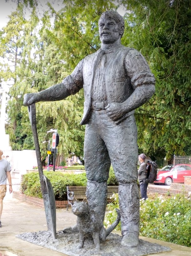 In the 18th century, Ware was the premier malting town in England, specialising in brown malt for the brewing of a beer known as `porter’. Above is a statue of a life-sized bronze sculpture of a male figure with a shovel and cat, The Malt Maker, cast in 1999 by Jill Tweed to commemorate 600 years of malting in Ware. It is an impresssive piece of male modelling, situated in front of St Mary the Virgin church and close to our coffee stop.