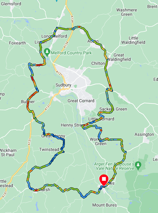 The outbound ride having been northwards along the Essex side of the Stour, on leaving Long Melford, we turned south and made the return leg down the Suffolk side.