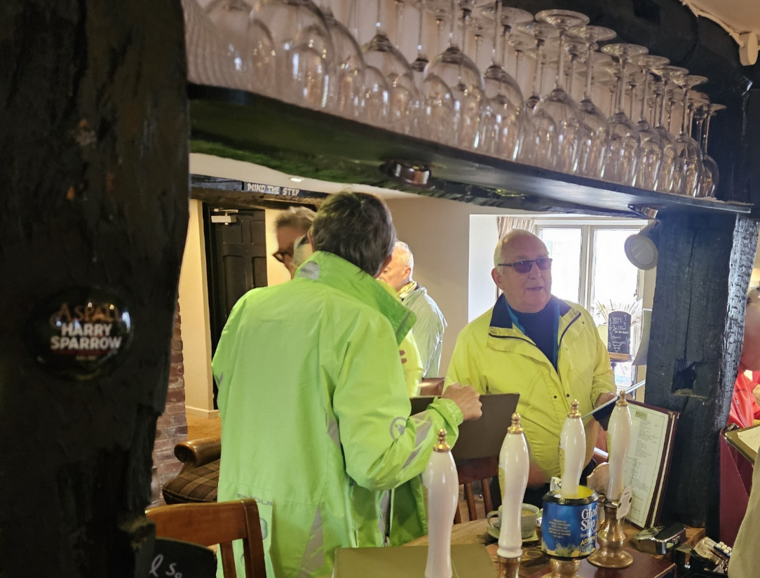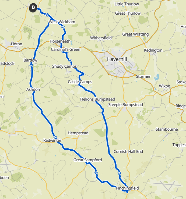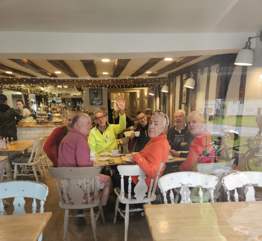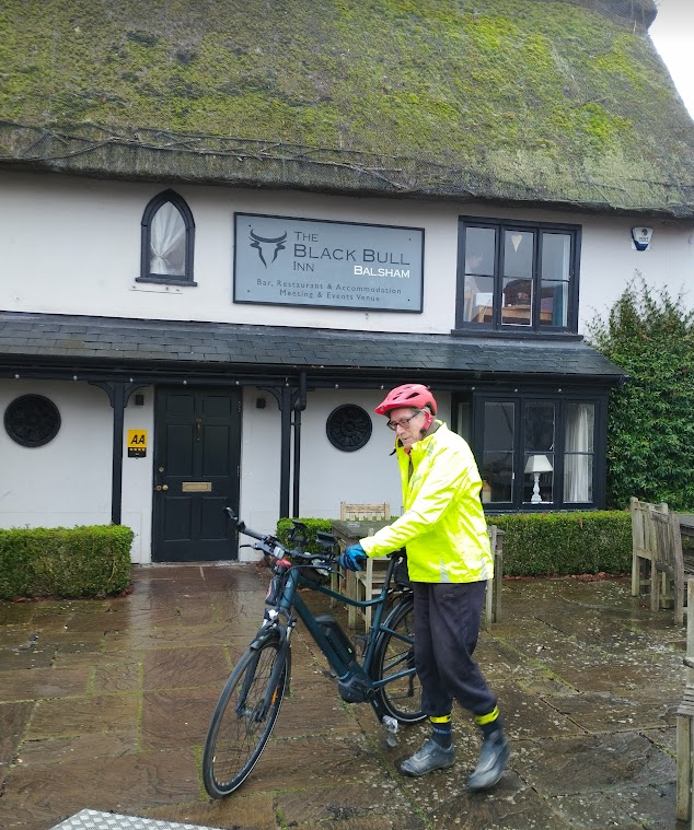 Still this day was warm enough for shorts, just about. I got the bike out but could hardly see the road from the house. Still off to a Maurice organised ride from the Black Bull at Balsham. The fog on the way was even worse than at home.