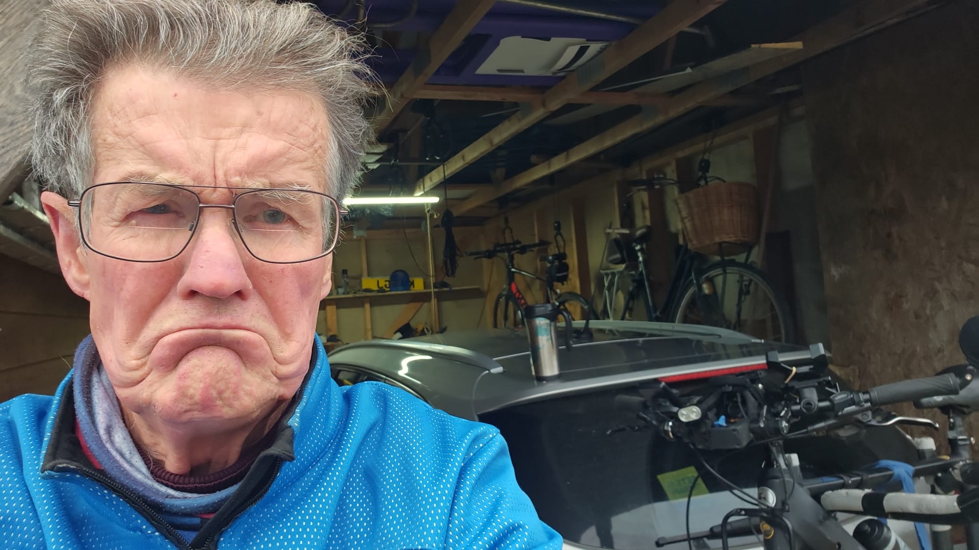 So it was that ten* hardy Windmillers pedalled away from The Cock Inn, well wrapped against the cold. It should have been a fifteen-strong turnout but for five sheepish excuses received, all with dog-ate-my-homework themes. Some credence, however, was given to Charles’ account of being unable to start his car, and he at least went to the trouble of sending a photograph. As for the others, we await sick notes.
