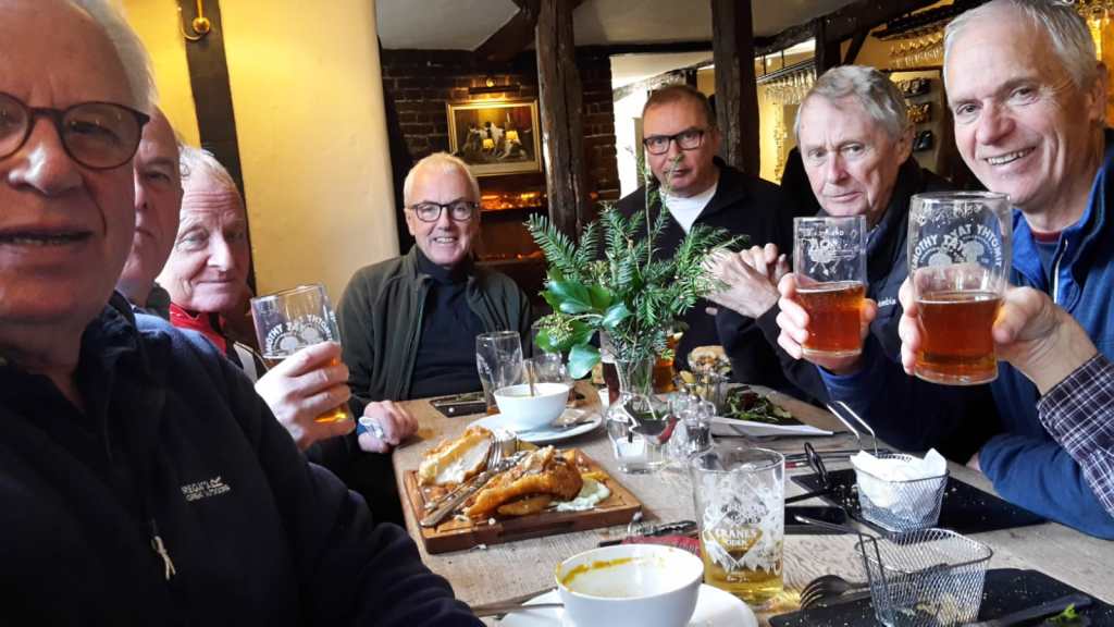Finally back at the pub and joined by Keith and Ken, we were well served to excellent food and beer. If it wasn’t for poor Brian limping around acting as a reminder, we could almost have forgotten the dramas at the start of the day.
