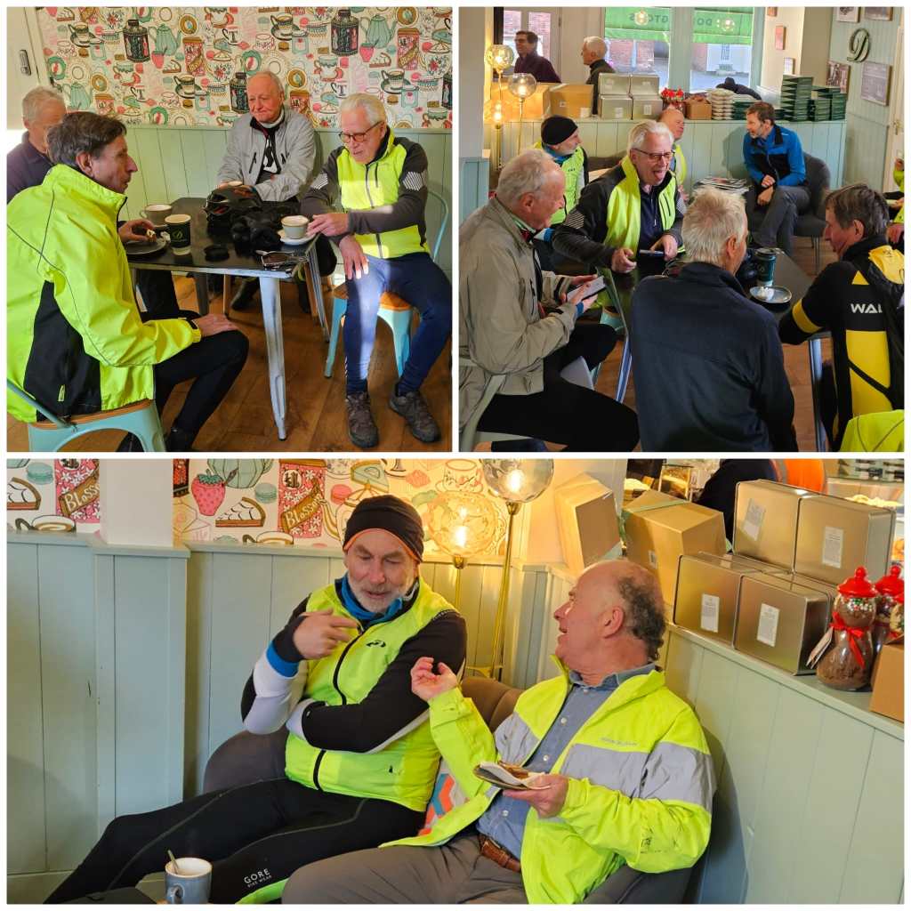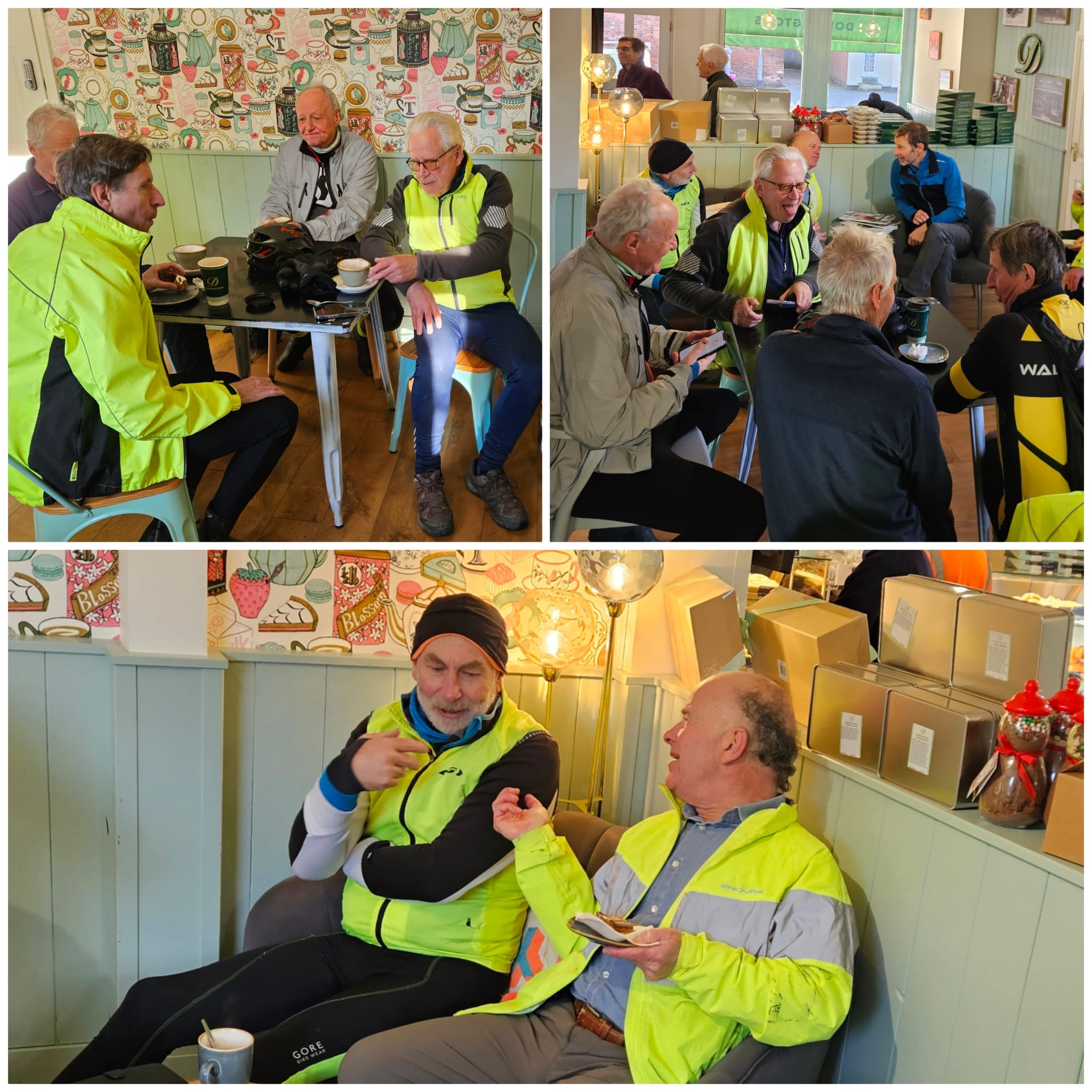 A new plan was required ! Just as discretion is the better part of valour, so cowardice is the better part of discretion. We decided to shorten our ride and stick to larger roads where possible, with the new, closer, coffee destination of Dorringtons in Newport proposed. In true Windmill fashion, a split resulted in two different routes to coffee. One group plodded on via Ansty whilst the majority turned tail and headed to Newport via Clavering. Thankfully no further falls. Brian and Jeremy resorted to the car to join us for coffee and cake.