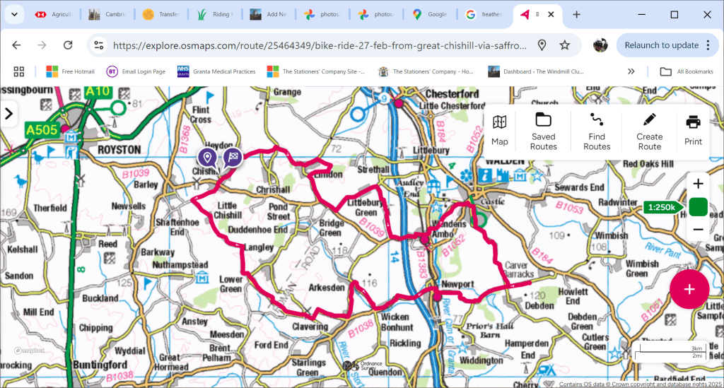 The route back continued the theme of the outward leg – hills, hills and more hills until the final mountainous climb up to The Pheasant from Shaftenhoe End. This involved once again squeezing past a road closed section at Langley Lower Green but it was good to see some of the lane being patched up, particularly the steep descent to Little Chishill.