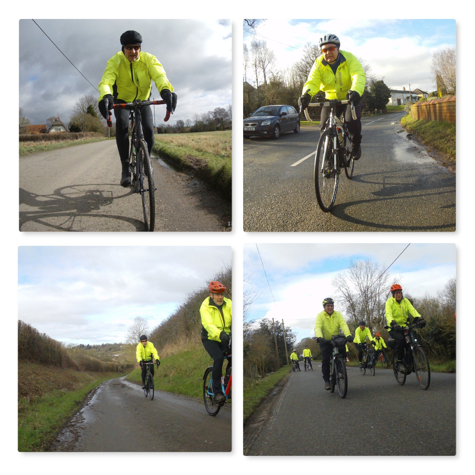 Setting off from The Pheasant in Great Chishill at 09.30 without the promised coffee beforehand but on a reasonably mild day compared to recent rides, two groups headed initially for Elmdon for the first climb of the day up Hollow Road towards Freewood Farm where the Jersey bull and heifers have been replaced by another breed – Devons or Red Polls or something in between? Not sure.
