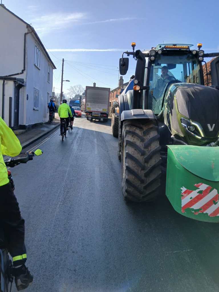 Here group three encountered an unexpected traffic jam near the narrow bridge. The combination of numerous of parked cars, a HGV heading one way and a tractor with an enormous trailer in the other plus a few increasingly frustrated car drivers provided a brief source of entertainment. No particular rush for us, enjoying the sunshine.