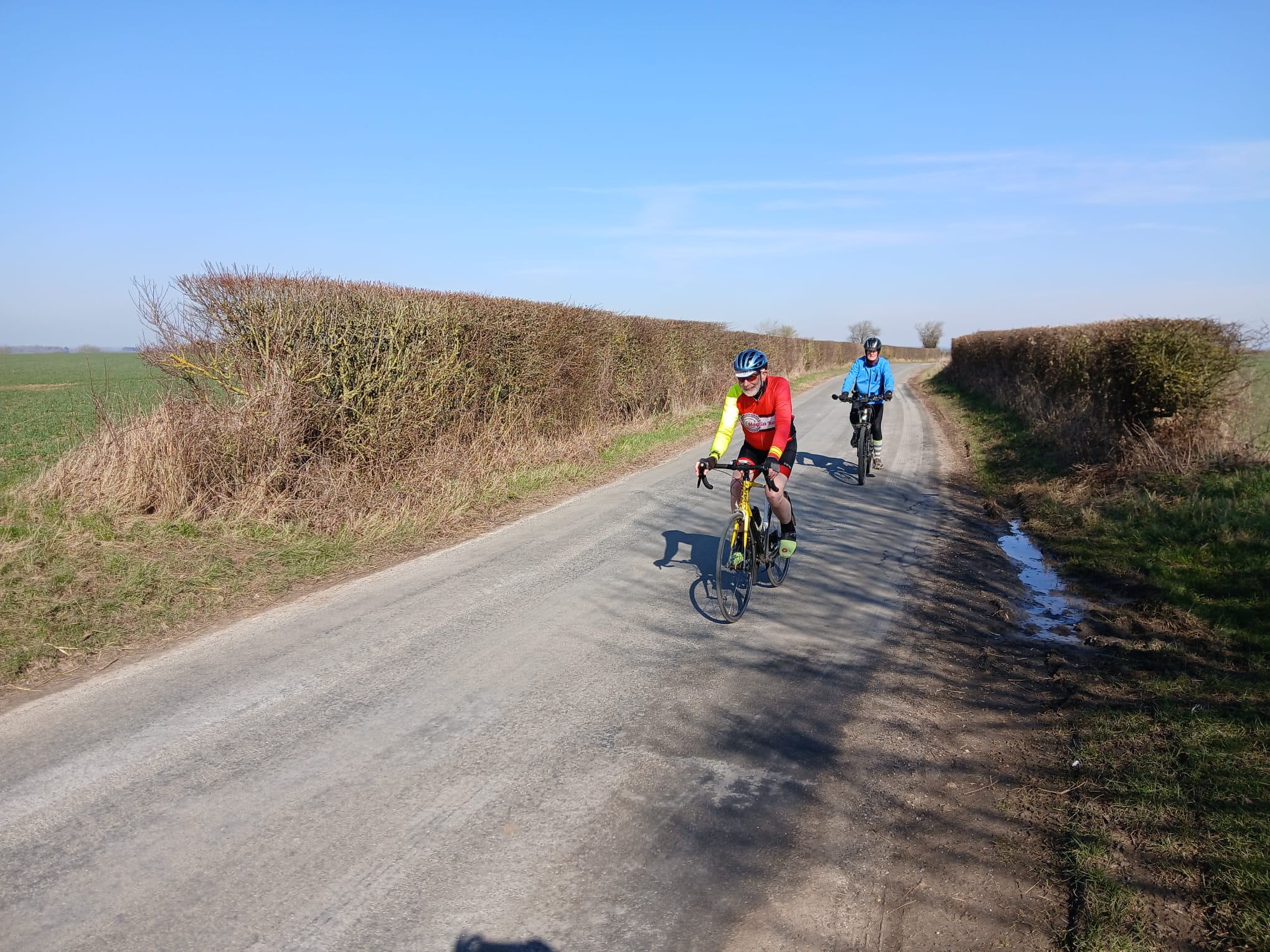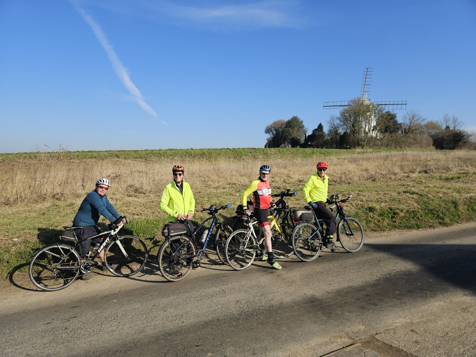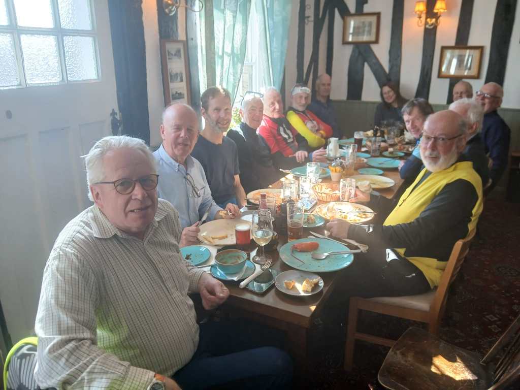 16 riders congregated at what has become a firm Windmill favourite: The Red Lion at Great Sampford offering Italian style pasta cookery and fine beer. With many white knees on display, two groups of 5 and one group of 6 headed off in a South Easterly direction in the direction of Great Barfield.