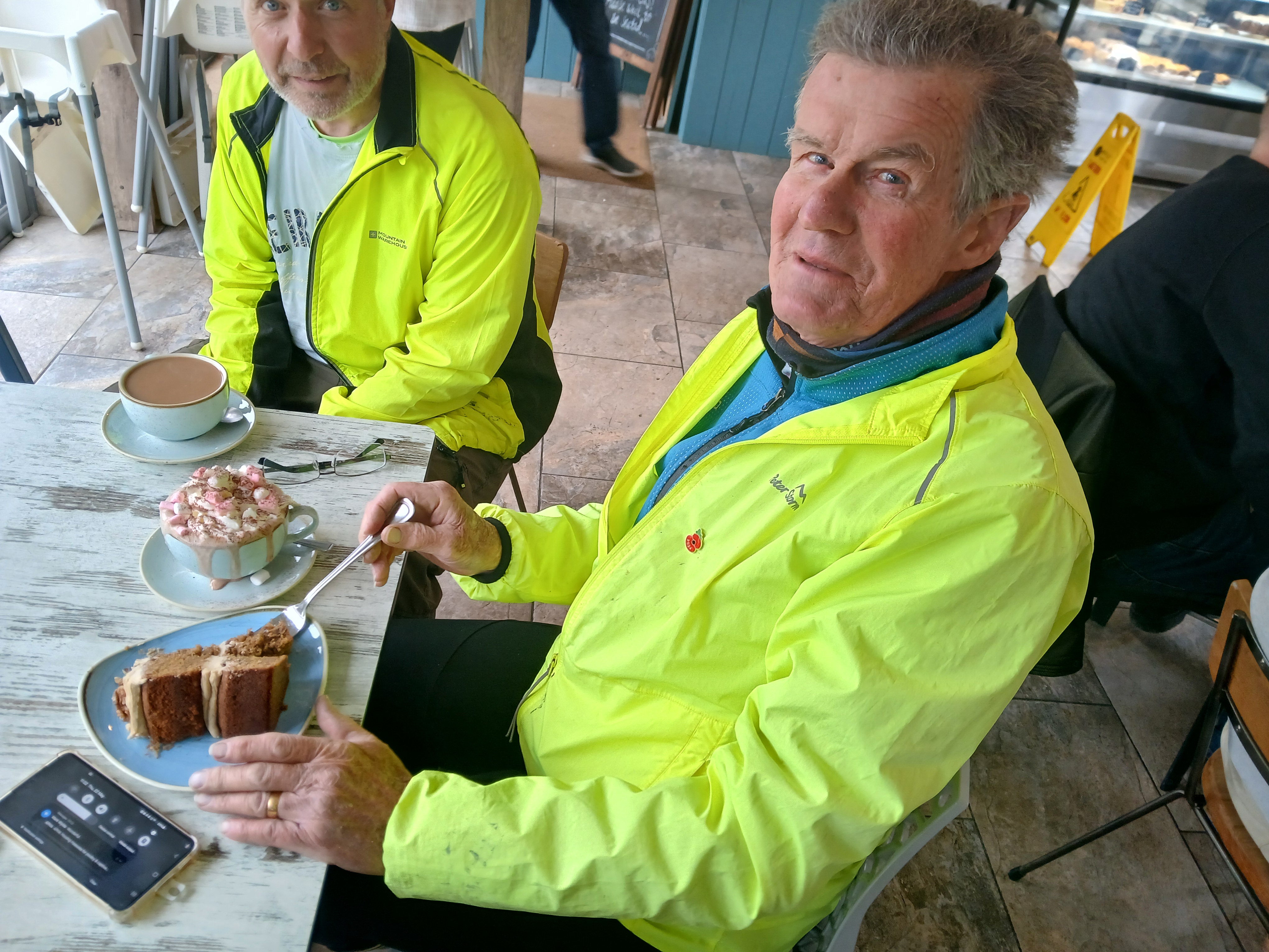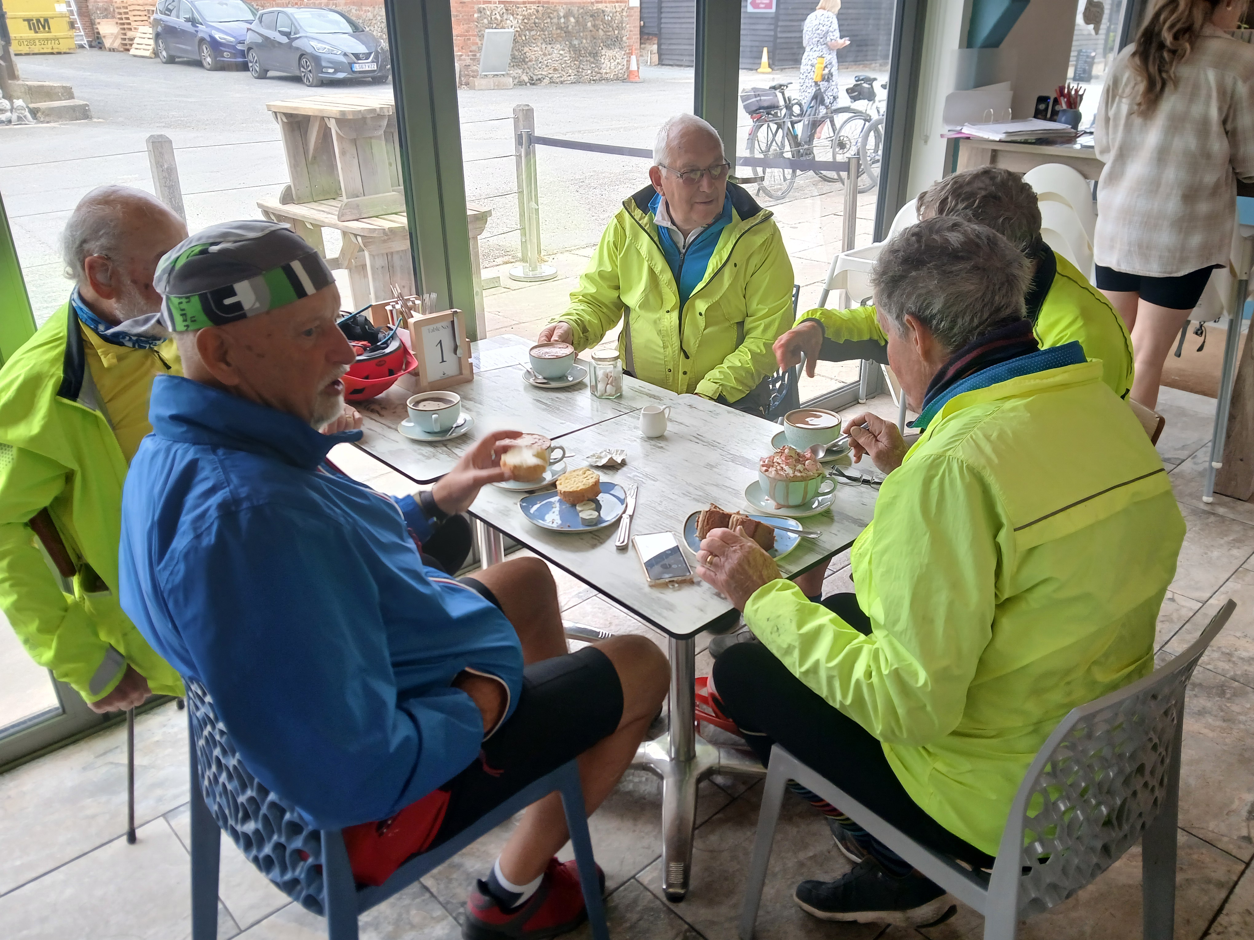 Coffee was had at Tarka’s at Baythorne End where the only ‘event’ of the day was a fall by Maurice whilst dismounting, luckily with only a bruise or two to show for it, thanks to an impressive parachute roll according to those who witnessed it. Subsequent discussion about the advantages of step through e-bikes did not result in Maurice rushing off to buy one.