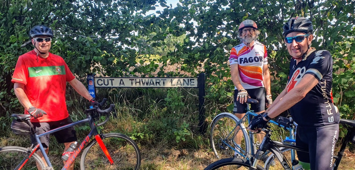 An hour or so earlier, ten Windmillers1 had set off from The Rayleigh Arms, Terling, following Martin’s route through some of the prettiest lanes in Essex. And it was on the approach to Maldon that we chanced upon the intriguingly named Cut A Thwart Lane.