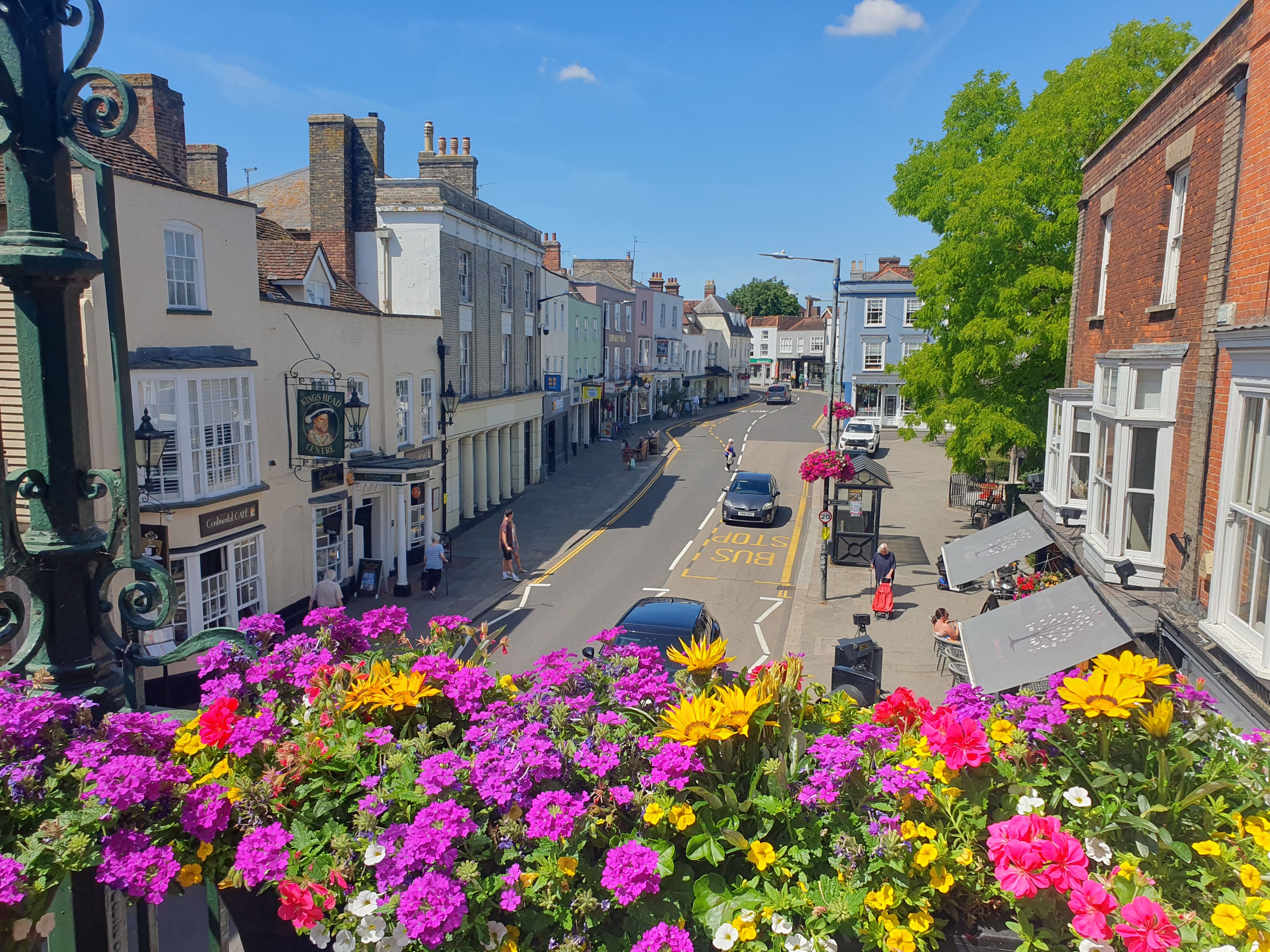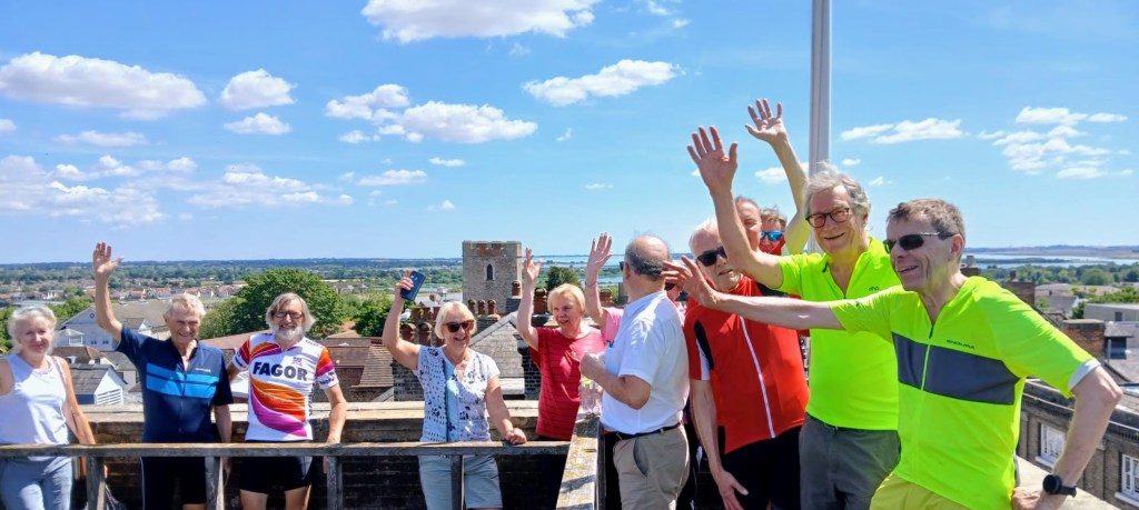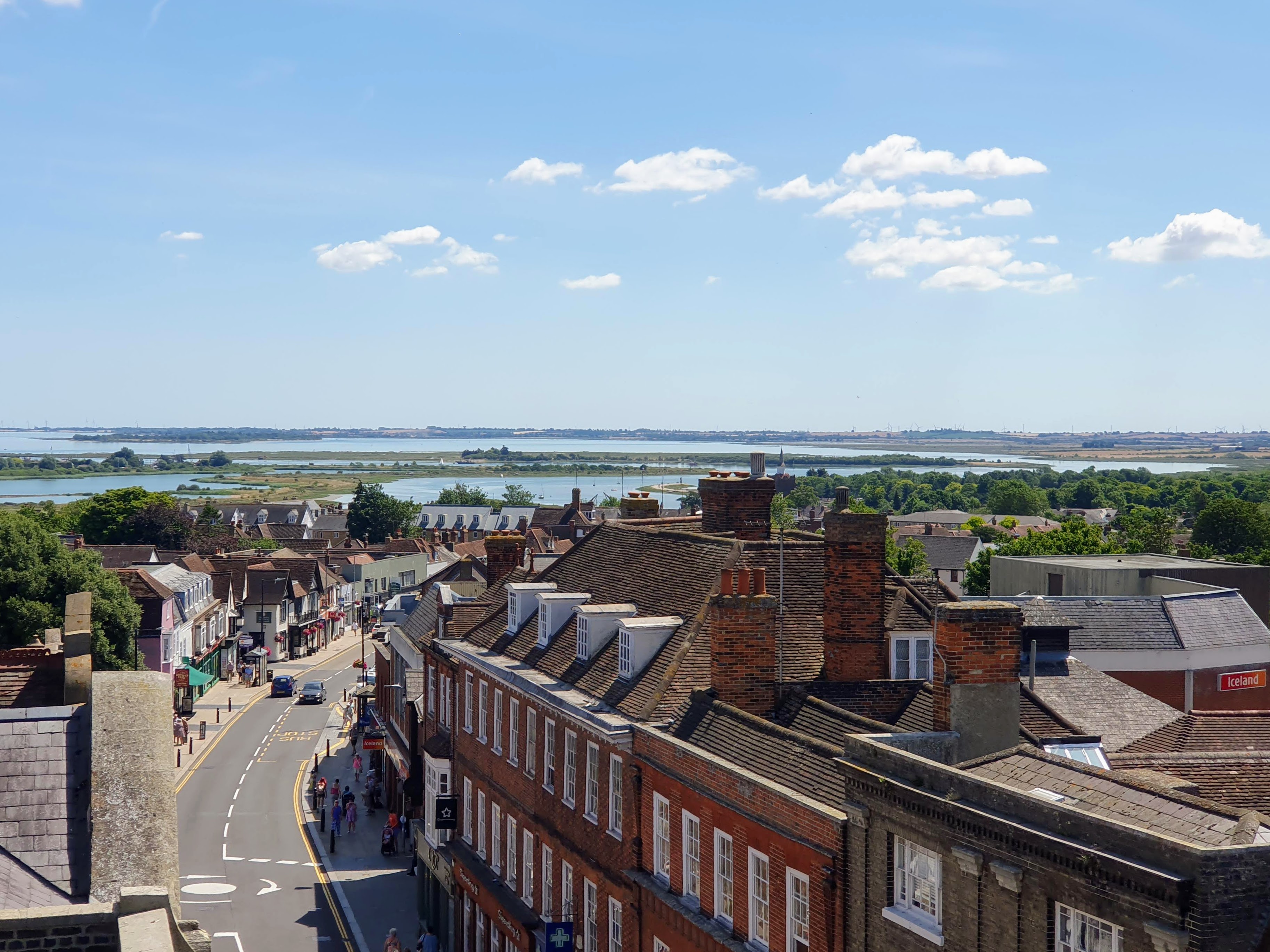 Ten miles into Thursday’s outing, we pitched up on Maldon High Street seeking refreshment and, in particular, a guided tour of the Moot Hall. The six hundred year old brick tower has at various times been a mansion house, town hall, courthouse, police station and town jail, and boasts a fine view over Maldon and beyond to the Blackwater Estuary.