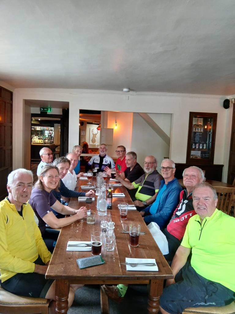 Reluctantly, we eventually had to leave, picking up a headwind on the way to Acton, then skirting the West side of Lavenham before arriving at the top of the aforementioned Hartest Hill and a fast plummet straight to the pub. Drinks outside, but too many wasps for us to eat in the immaculate garden. Instead, we tucked into sandwiches and beer inside whilst admiring the real linen napkins. A great day for a great ride.