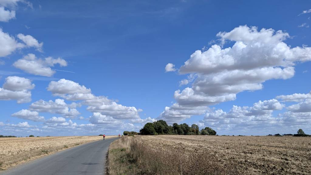 Soon off the main road, at Tilbury juxta Clare, we turned into the brisk breeze for our return to Helions Bumpstead.