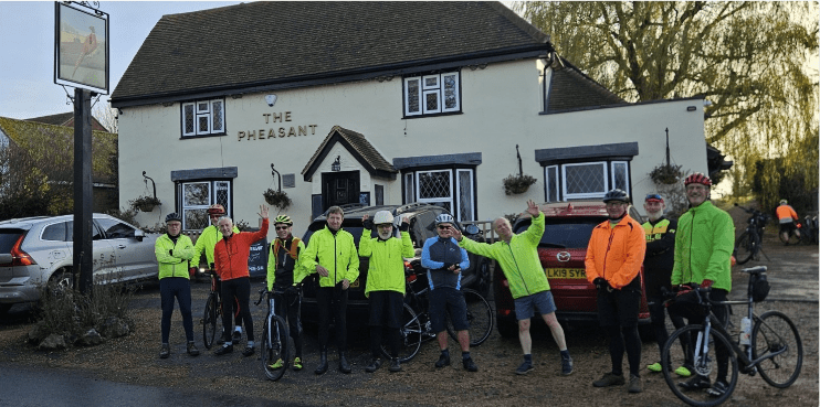 However, what happens when Andrew’s computer is in the computer-hospital ! Chaos that’s what. So it came to pass that no ride was organized for this Thursday. No pub booked, no coffee stop, no route. Oh dear. Rod stepped into the gap as quick as a flash and constructed a route while Alan booked The Pheasant at Great Chishill. They are used to us and could host at short notice. I think we pushed out another large and ever expanding group though.