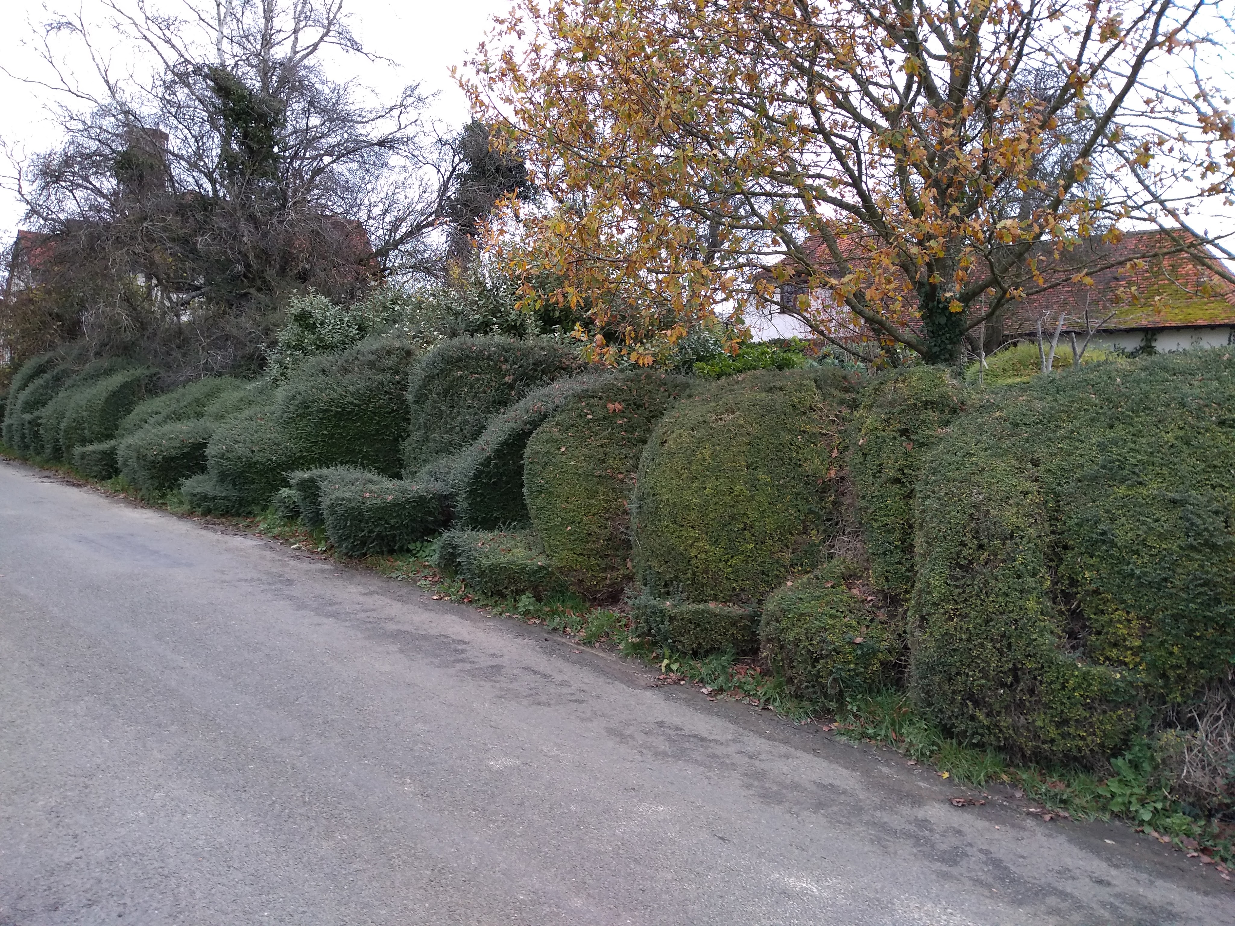Just outside Clavering on the way to Langley Upper Green we have a fine example of hedges cut according to two British traditions. The smooth and understated, following a time honoured style, for which the UK is famous. This tradition is best embodied by the Royalty and our splendid city parks perhaps. And on the other side, innovation and individuality, this is also the British way; the Beatles, Punk, Henry Moore and Banksy. In Switzerland the right hand hedge would elicit a letter from the council, asking for it to be tided up. I speak from grim experience. I was fined for mowing the grass on Sunday and sternly warned by a local government official, not to flush my apartment toilet after 10 pm.