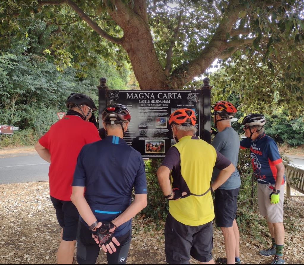 I do remember seeing Castle Hedingham flash by in the corner of my eye. Charles, Geoff, Rod, Ken, and Keith however stopped to absorb some of its 800-year history. Robert de Vere (note the Norman name) who owned the castle at Hedingham in 1215 was one of the 25 barons who were sufficiently upset with King John, to risk death in forcing the King to sign the Magna Carta. He had raised their taxes. Most revolutions start that way of course; Wat Tyler′s rebellion (pol tax), French Revolution, American Revolution, Russian Revolution …. Wikipedia lists another 300 or so more, in just about every country in the world. I wonder, has there ever been a revolution about anything other than tax?