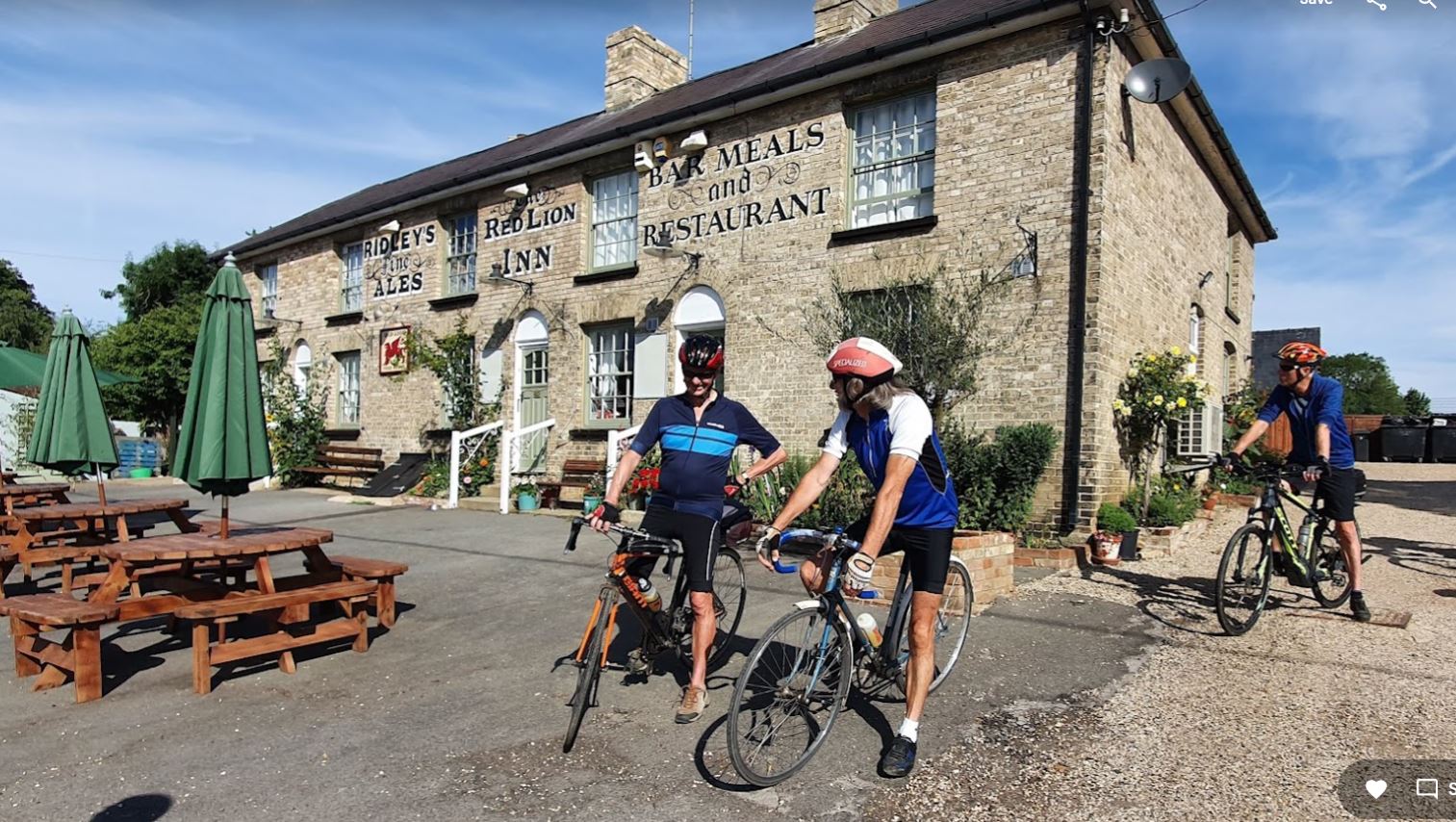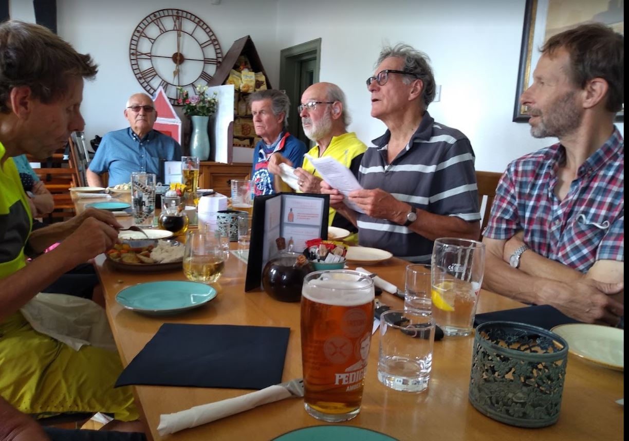 Safely back at the Red Lion before the worst of the mid-day heat a drink or two was called for. Maurice met us back at the pub ready to enjoy that part of the day. The food was a level above the usual and service very prompt. We count ourselves lucky to have so much good cycling and visitable pubs within a short drive of home.