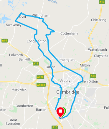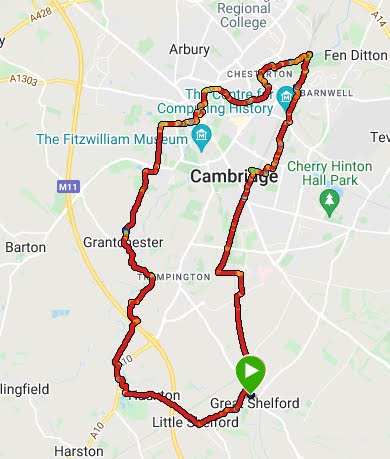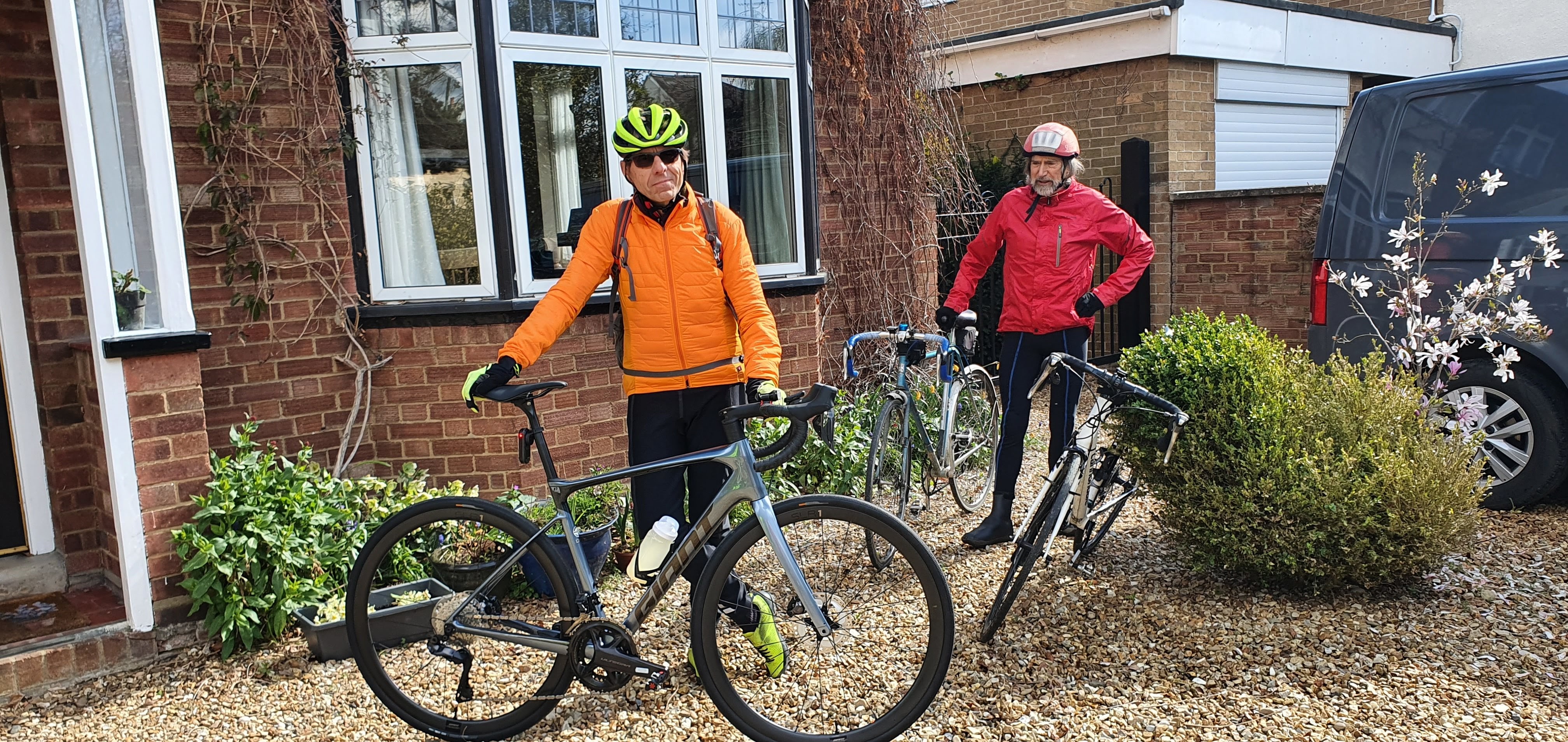 Punctures aside, we had enjoyed a splendid ride around the quiet lanes west of Cambridge, followed by an excellent lunch in Duxford. Moreover, it was Geoff’s birthday and he very obligingly bought the drinks.